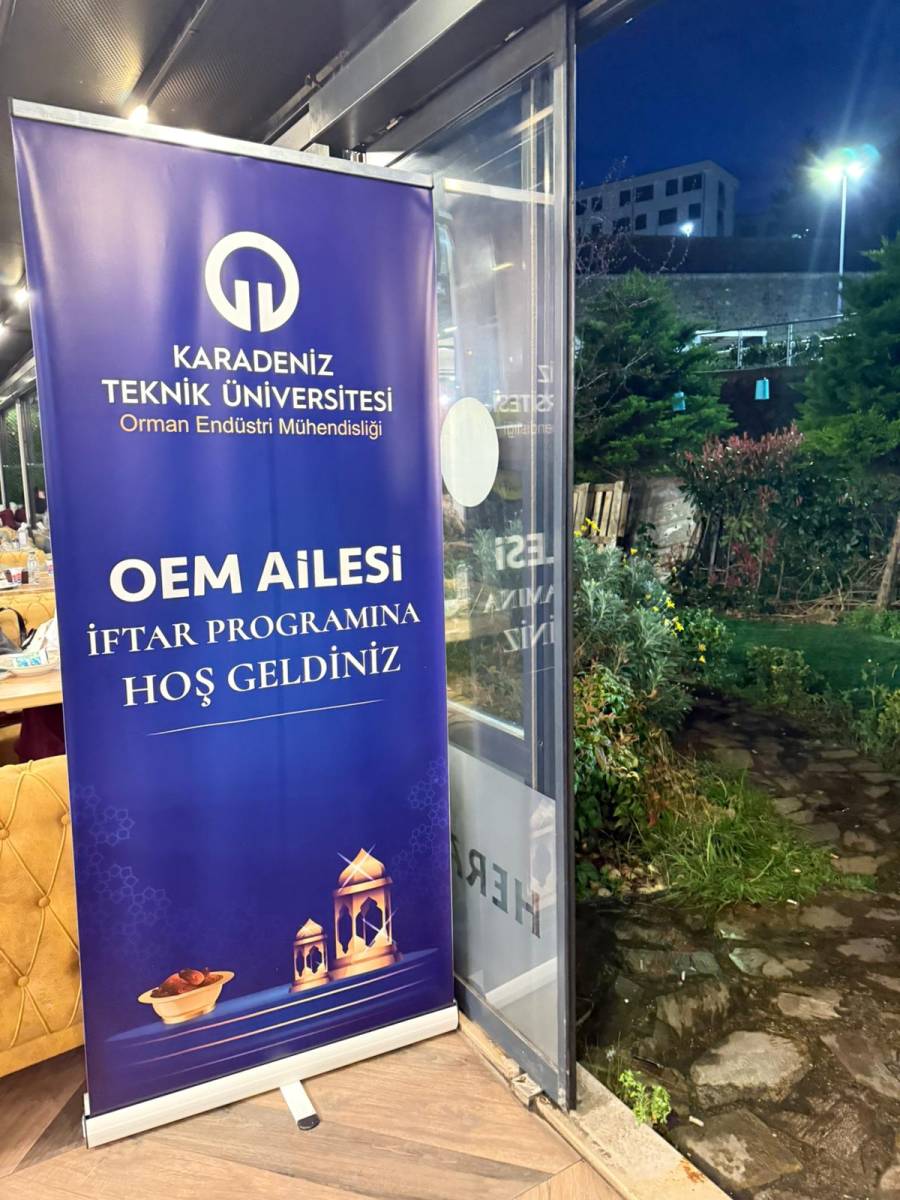 KTÜ Orman Endüstri Mühendisliği Bölümü tarafından Ramazan ayının birlik, beraberlik ve paylaşma ruhunu yaşatmak amacıyla iftar organizasyonu düzenlendi. Programa; KTÜ Rektörü Prof. Dr. Hamdullah Çuvalcı, Rektör Yardımcısı Prof. Dr. Ali Temiz, Orman Fakültesi Dekanı Prof. Dr. Ömer Kara, Dekan Yardımcıları Prof. Dr. Bedri Serdar ve Doç. Dr. İbrahim Yıldırım’ın yanı sıra Bölüm Başkanımız Prof. Dr. Ayfer Dönmez Çavdar, bölüm öğretim üyeleri ile lisans-lisansüstü öğrencilerimiz ve idari personelimiz katılım sağladı. Samimi bir atmosferde gerçekleşen programda, KTÜ Rektörlüğü, Orman Fakültesi Dekanlığı, ve OEM Bölümü öğretim üyeleri ile öğrenciler aynı sofrada buluşarak Ramazan ayının manevi iklimini paylaştılar.