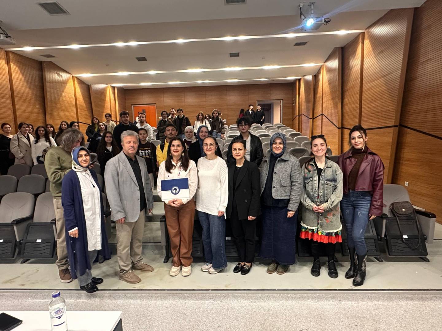 Etkinlik sonunda Batı Dilleri ve Edebiyatı Bölüm Başkanı Prof. Dr. Naci Kayaoğlu, sunumları ve katkıları için Öğr. Gör. Zehra Şahin Bektaş’a teşekkür belgesi takdim etti.