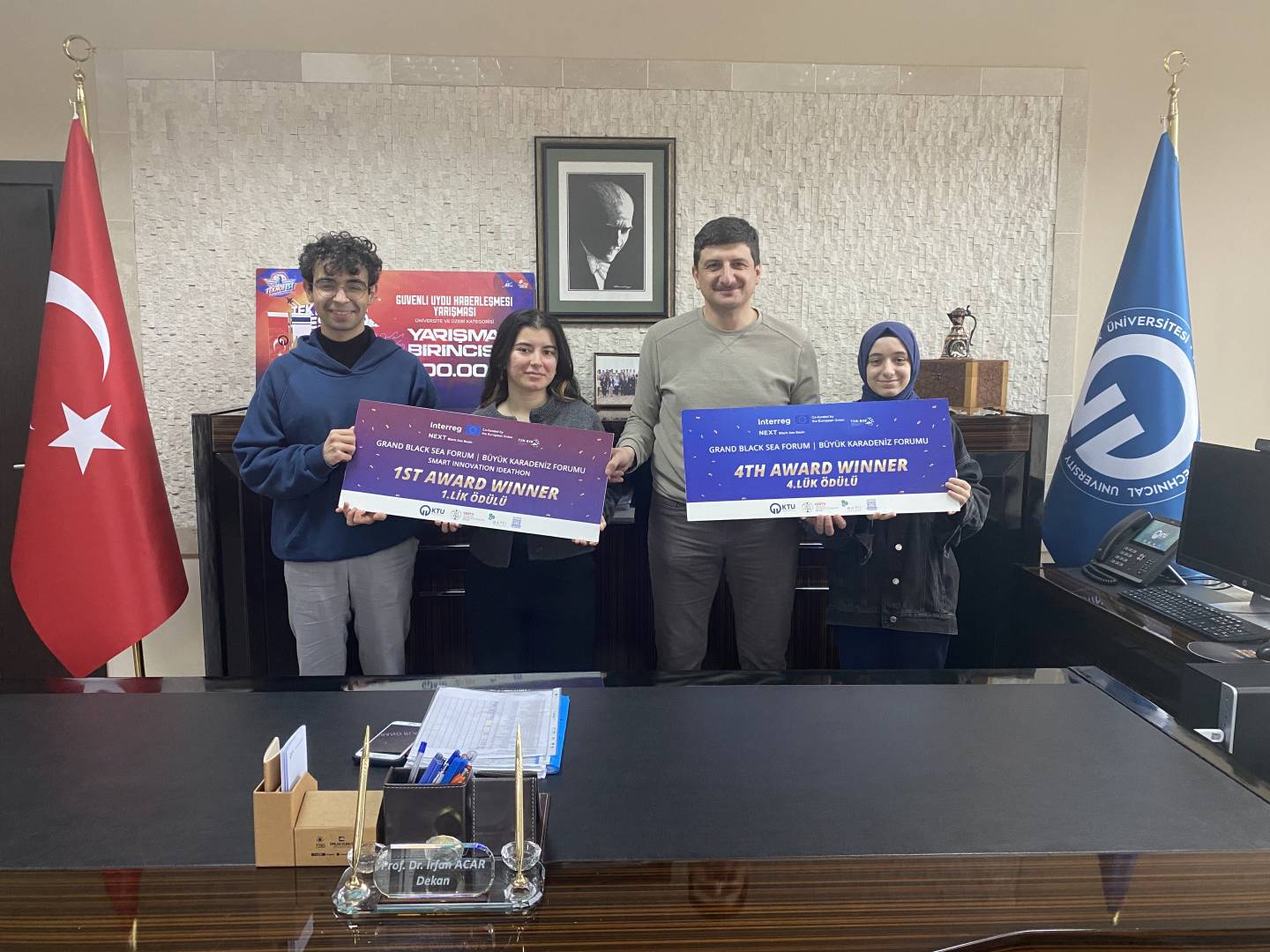 Yarışmalarda derece alan öğrencilerimiz makamında ağırlayan Dekanımız Sayın Prof. Dr. İrfan Acar, Her iki projede emeği geçen tüm öğrencilerimize ve danışmanlarımıza teşekkür ederek, başarılarının devamını diledi.