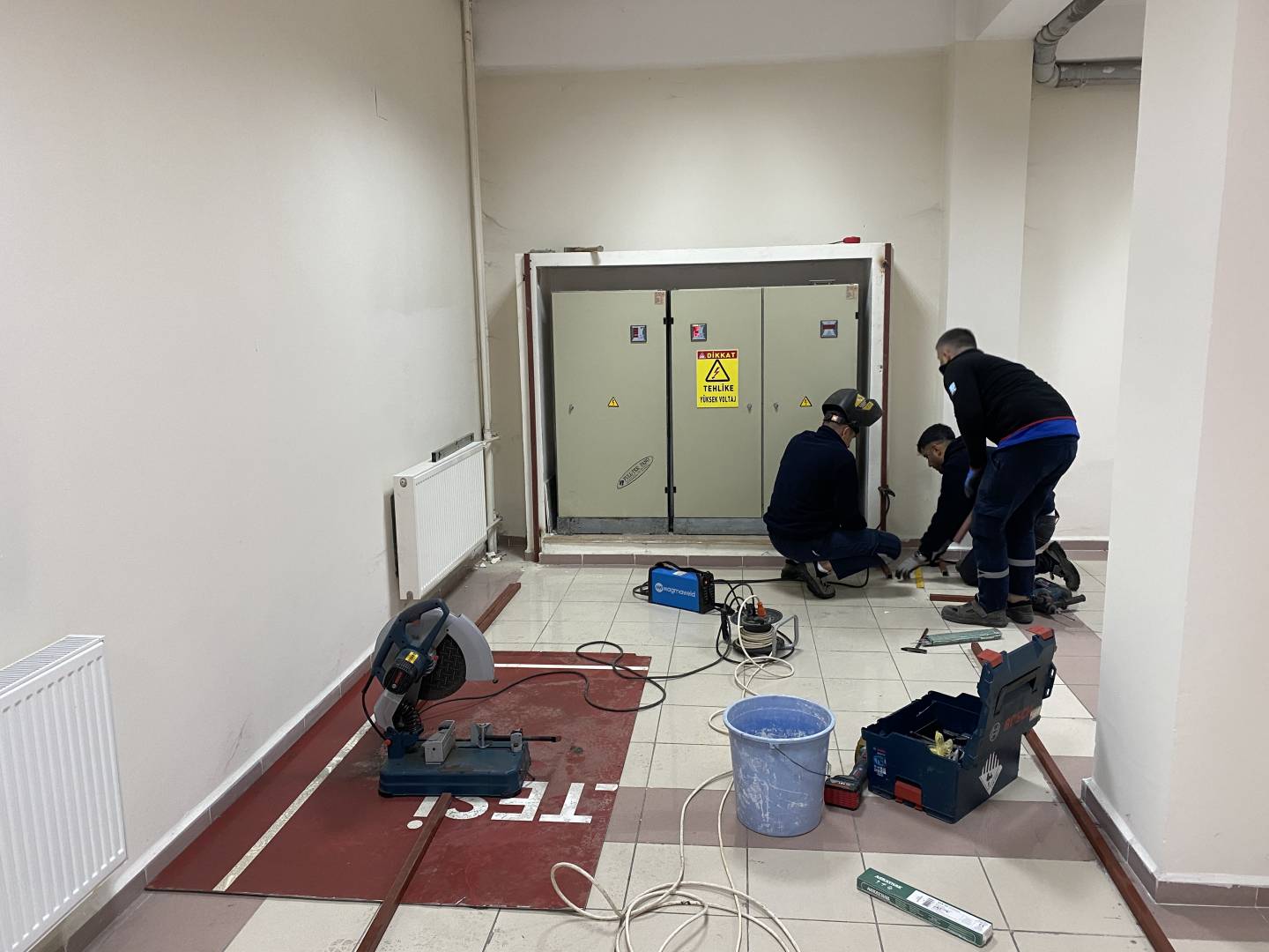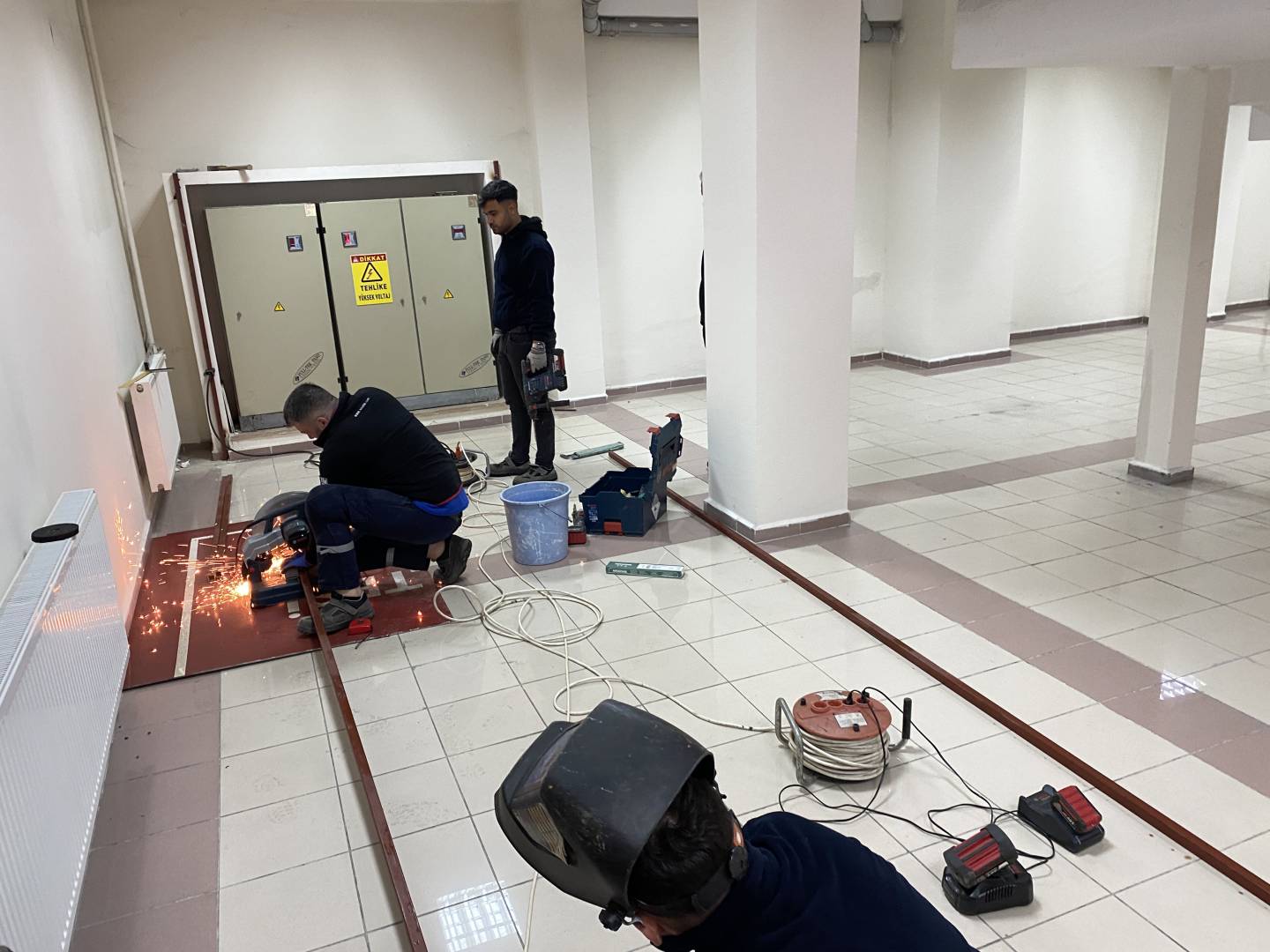 Yerleşkemizde bulunan 7 adet binanın giriş ve çıkış kapı önlerine kaydırmaz bant çekilerek olası bir düşme engellenmiş oldu.