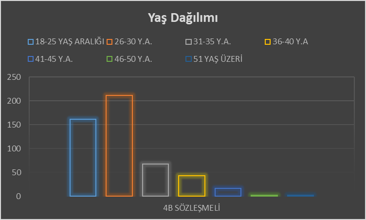 | 4B Sözleşmeli Personel | 162 | 212 | 68 | 43 | 16 | 2 | 2 |
