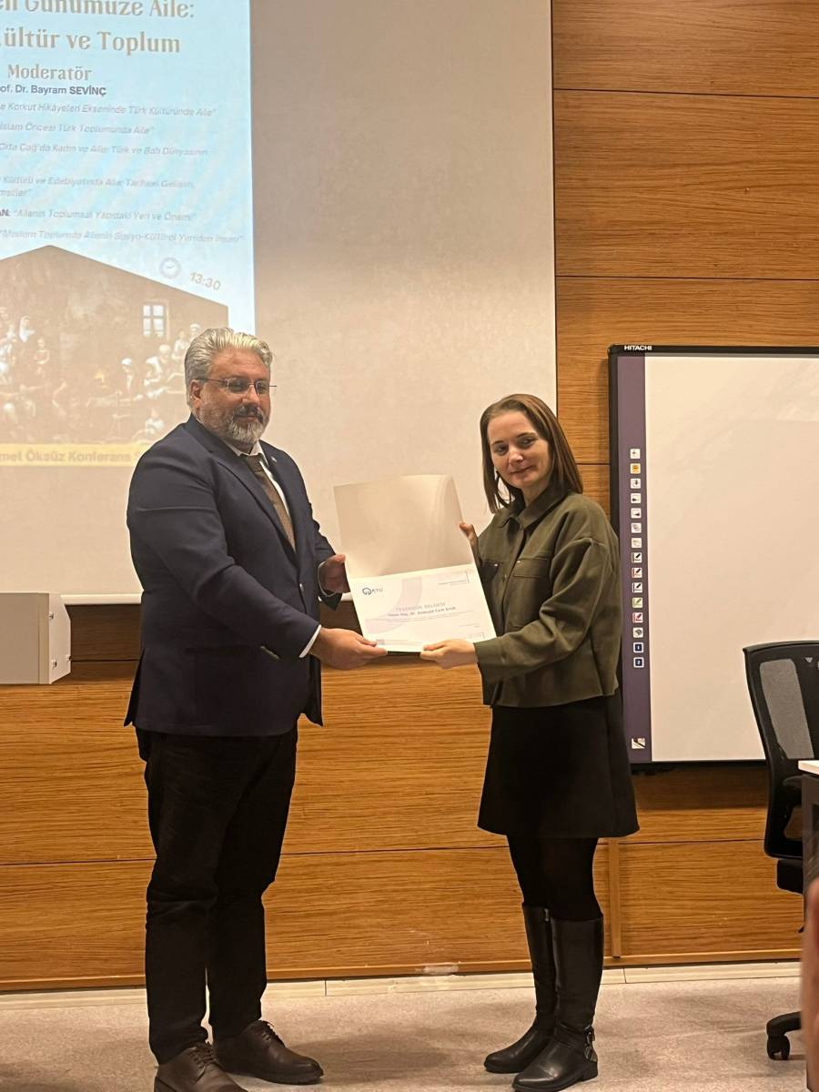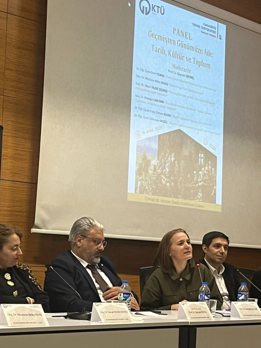 Ülkemizde 2025 yılının "Aile Yılı" ilan edilmesi vesilesiyle Edebiyat Fakültesince düzenlenen "Geçmişten Günümüze Aile" paneli, 18 Aralık 2025 Perşembe günü Edebiyat Fakültesi Prof. Dr. Hikmet ÖKSÜZ Konferans Salonu'nda gerçekleştirildi. Saat 13.30-15.00 arasında yüz yüze yapılan bu anlamlı etkinlikte, Bölümümüz Başkanı Doç. Dr. Badegül CAN EMİR, konuşmacı olarak yer aldı.