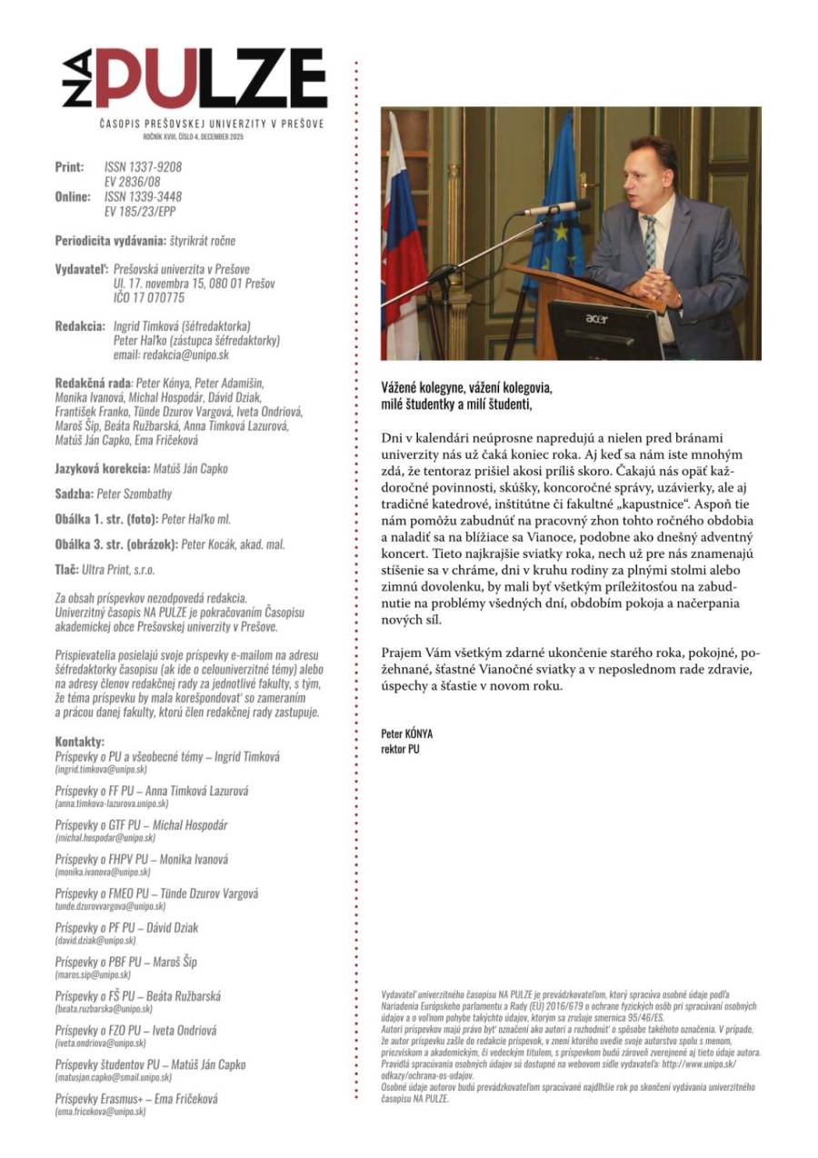 Bölümümüz Slovakya Merkezli Preşov Üniversitesinin "NA PULZE" Adlı Dergisinde Yer Aldı