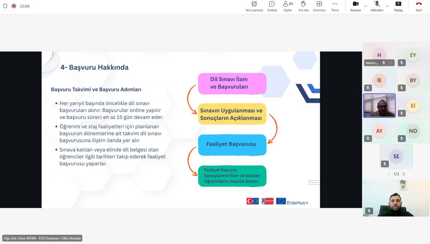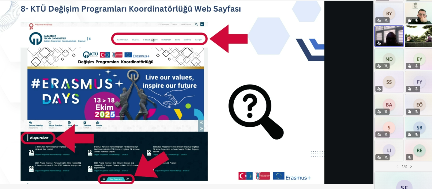 Enstitümüz tarafından Üniversitemiz Değişim Programları Koordinatörlüğünün katkılarıyla 29 aralık 2025 tarihinde çevrimiçi olarak "Erasmus+ Öğrenci ve Personel Hareketlilikleri Bilgilendirme Toplantısı" isimli etkinlik düzenlendi. Dış İlişkiler Genel Koordinatörlüğü, Değişim Programları Koordinatörlüğü Erasmus+ ekibinden Öğr. Gör. Onur Aydın etkinlik kapsamında lisansüstü öğrencilere ve akademisyenlere yönelik Erasmus Öğrenim Hareketlilikleri ve Staj Hareketleri hakkında bilgiler verdi.