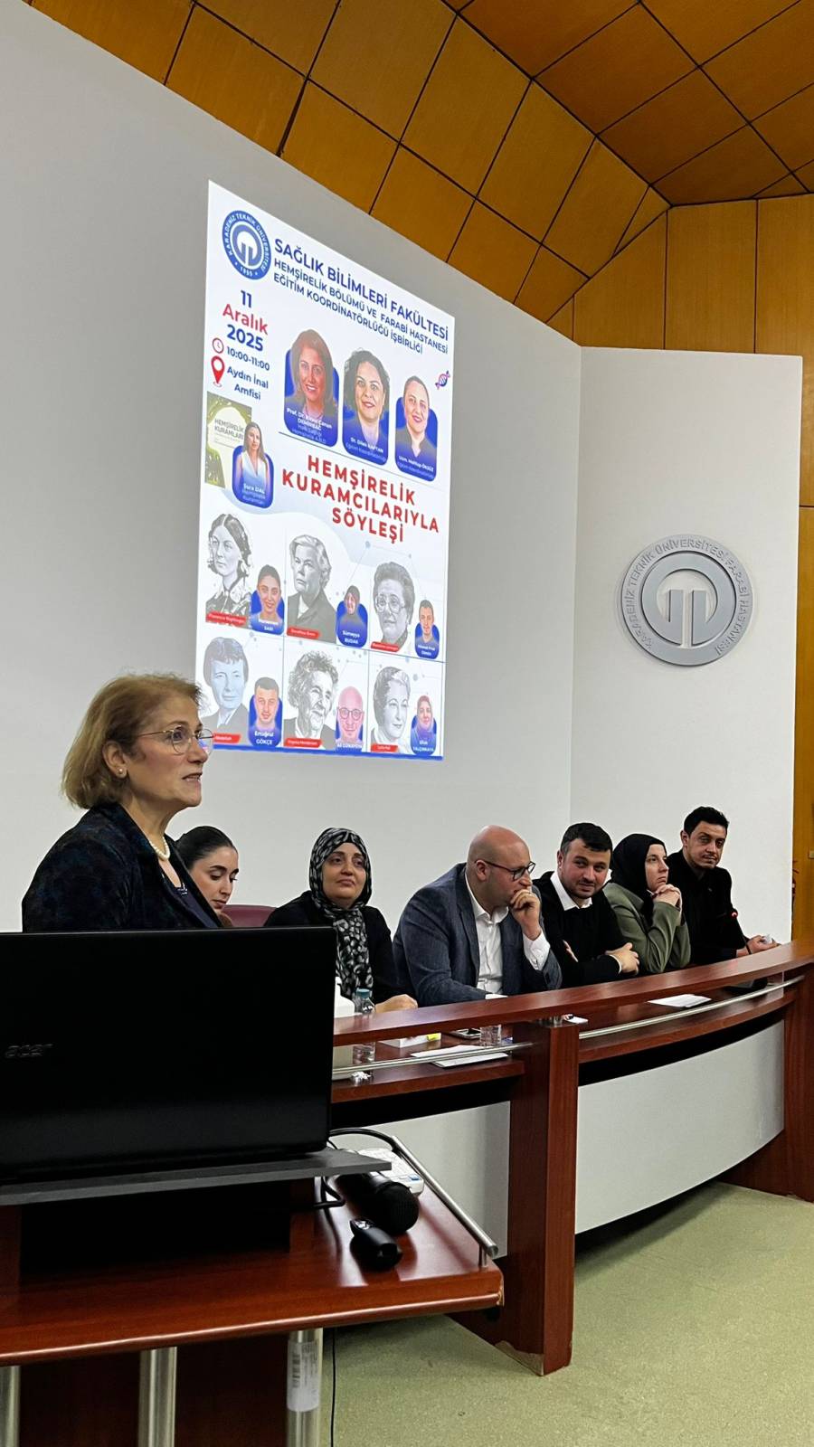 KTÜ Sağlık Bilimleri Fakültesi Hemşirelik Bölümü öğretim üyelerinden Prof. Dr. Birsel Canan Demirbağ’ın sorumluluğunu yürüttüğü HEM6023 Hemşirelik Kuramları dersi kapsamında, KTÜ Sağlık Bilimleri Fakültesi Hemşirelik Bölümü ile KTÜ Farabi Hastanesi Eğitim Koordinatörlüğü iş birliğinde düzenlenen “Hemşirelik Kuramcılarıyla Söyleşi” programı, 11 Aralık 2025 tarihinde saat 10.00’da gerçekleştirildi.