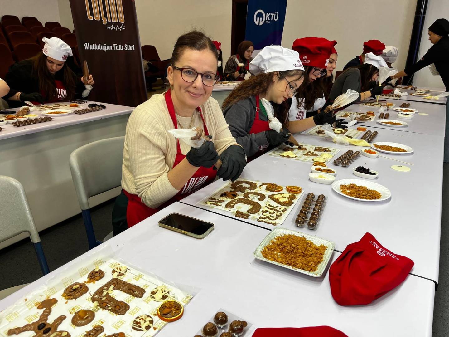 Etkinlik kapsamında öğrencilerimiz, çikolatanın tarihçesi, üretim aşamaları, temperleme teknikleri ve el yapımı çikolata çeşitlerinin hazırlanışı hakkında uygulamalı bilgiler edindiler. Teorik bilginin pratiğe dönüştüğü bu keyifli etkinlikte öğrencilerimiz hem el becerilerini geliştirme hem de beslenme bilimi perspektifinden çikolata üretimini gözlemleme fırsatı buldular.