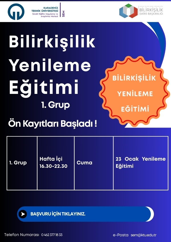 19-20 Ocak Teorik Eğitim 21-22 Ocak Uygulama Eğitimi |