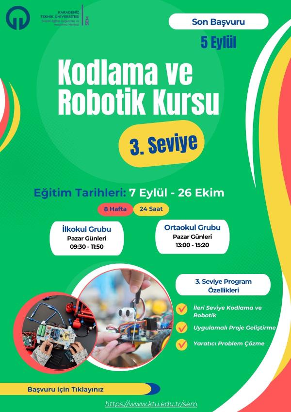 Kodlama ve Robotik Kursu 3. Seviye kayıtları başladı.