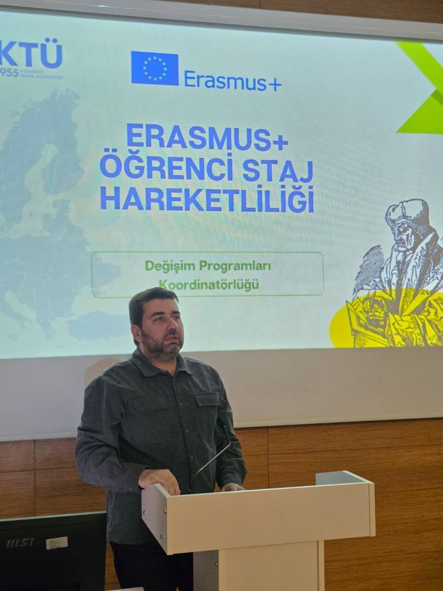 26.11.2025 tarihinde saat 14:00'da bölümümüz ve KTÜ Dış İlişkiler Koordinatörlüğü ile birlikte Erasmus Bilgilendirme Toplantısı yapılmıştır.