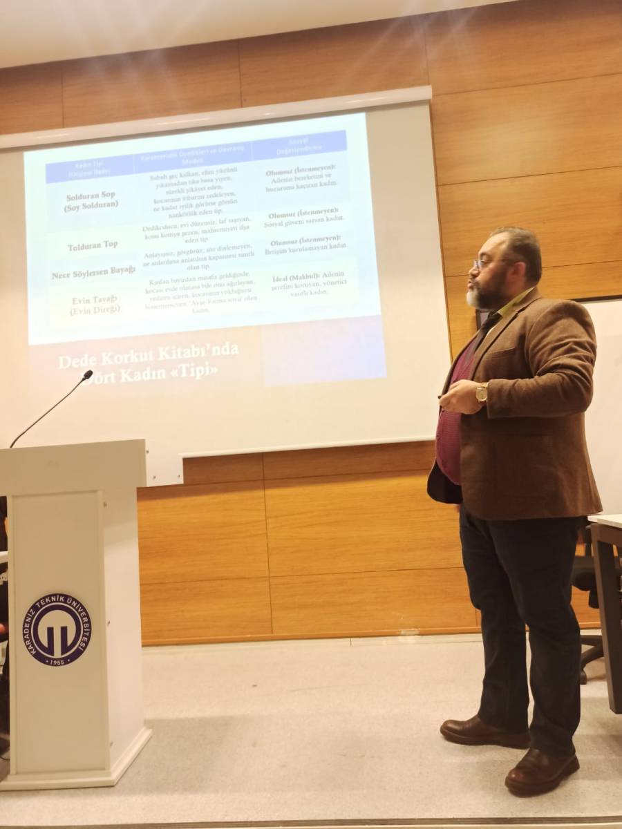 Bölümümüz öğretim üyesi Dr. Berk Yılmaz'ın ''Dede Korkut Hikayeleri Ekseninde Türk Kültüründe Aile'' başlıklı konuşmasını gerçekleştireceği ''Geçmişten Günümüze Aile: Tarih, Kültür ve Toplum'' başlıklı panel, 18.12.2025 saat 13.30'da Hikmet Öksüz Amfisi'nde gerçekleştirilmiştir.