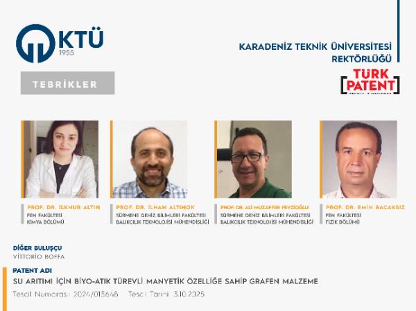 Faydalı Model başvurusu tescillenen akademisyenlerimizi ve buluşçuları tebrik eder, akademisyenlerimizin KTÜ Ekolüne verdiği katkılardan dolayı teşekkür ederiz.