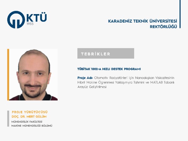 Ulusal Patent başvurusu tescillenen akademisyenlerimizi ve buluşçuları tebrik eder, akademisyenlerimizin KTÜ Ekolüne verdiği katkılardan dolayı teşekkür ederiz.