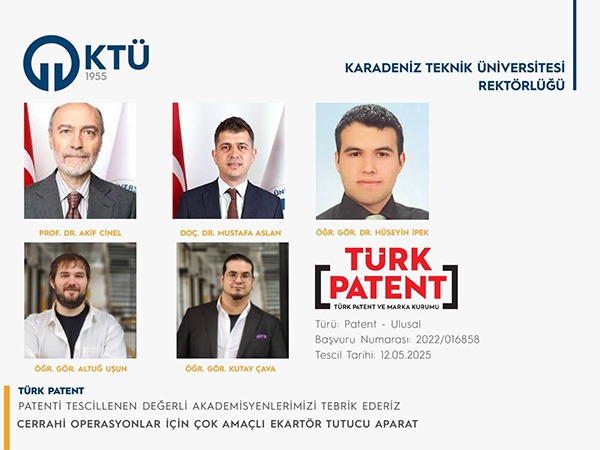 Akademisyenimizin ve Öğrencimizin (Mezun) Ulusal Patent Başvurusu Tescillenmiştir