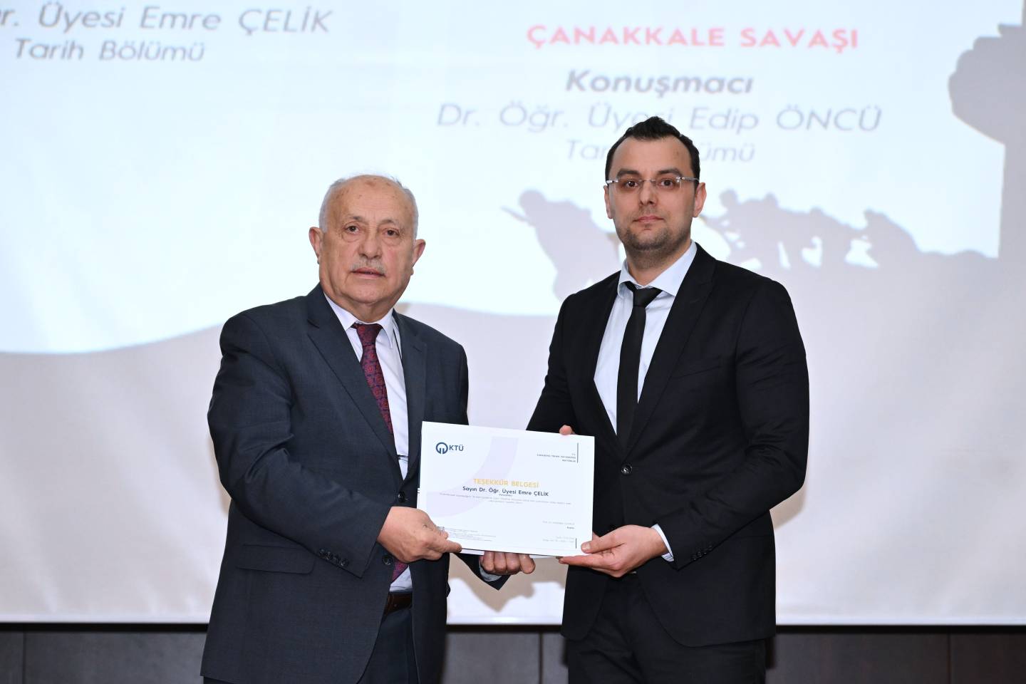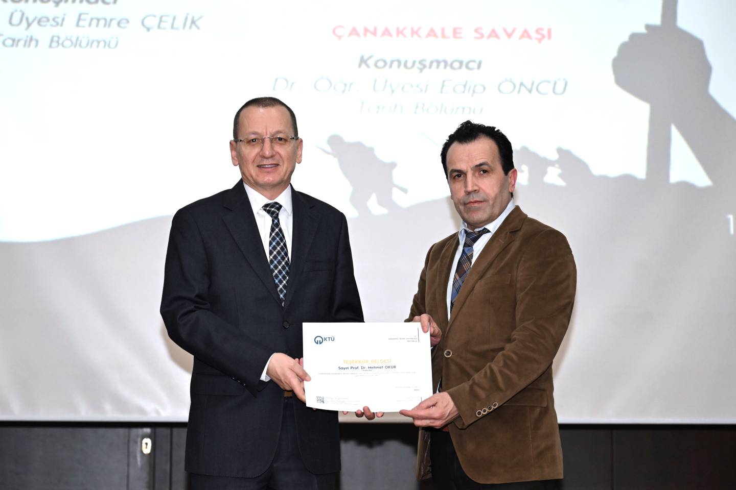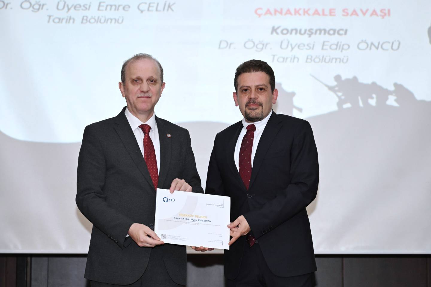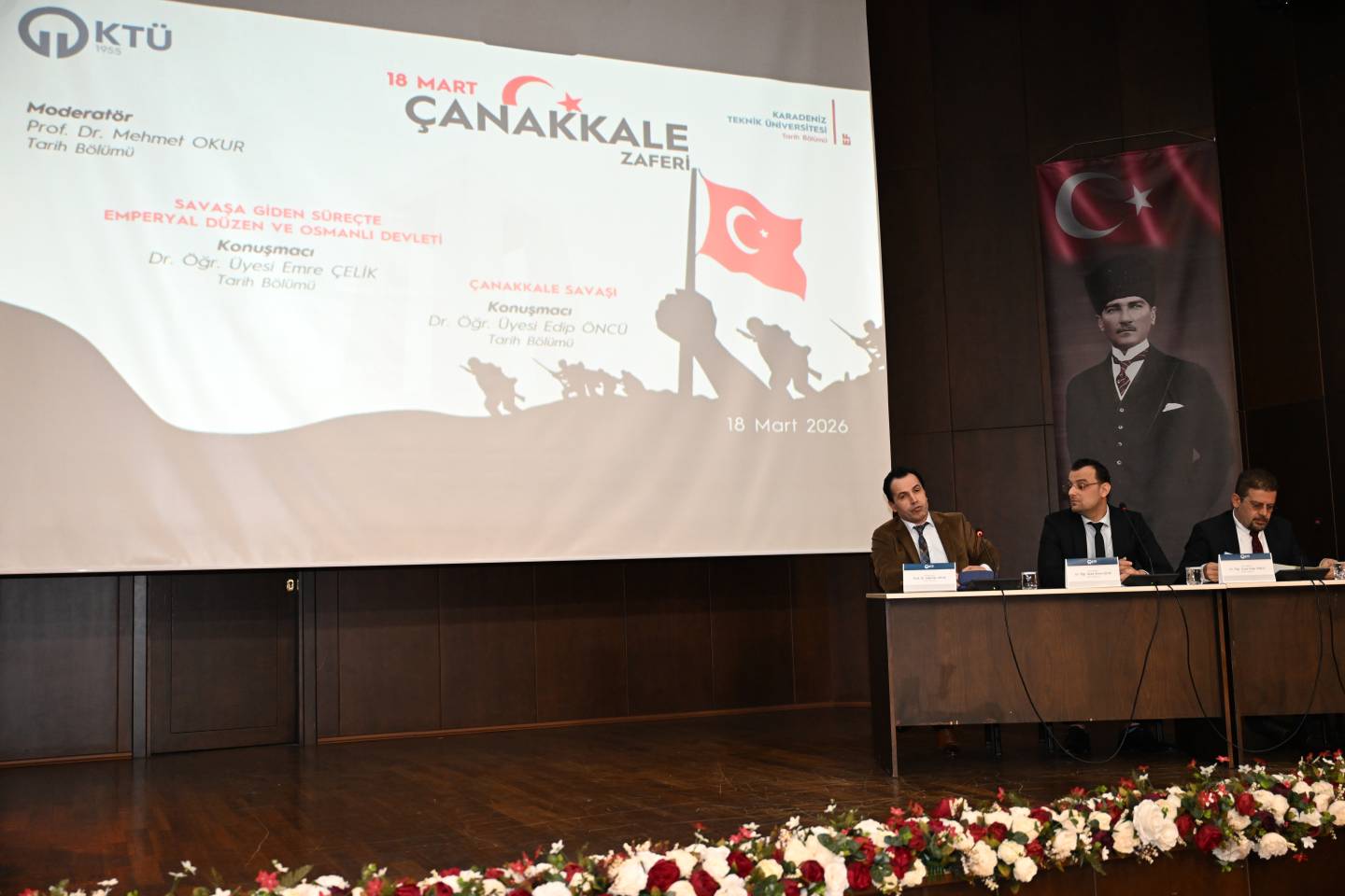 Üniversitemiz Edebiyat Fakültesi Tarih Bölümü koordinasyonunda düzenlenen “18 Mart Çanakkale Zaferi” Paneli, Prof. Dr. Mehmet OKUR moderatörlüğünde ve Dr. Öğr. Üyesi Emre ÇELİK ile Dr. Öğr. Üyesi Edip ÖNCÜ’nün konuşmacı olarak katılımıyla Prof. Dr. Osman Turan Kültür ve Kongre Merkezi’nde gerçekleştirildi.