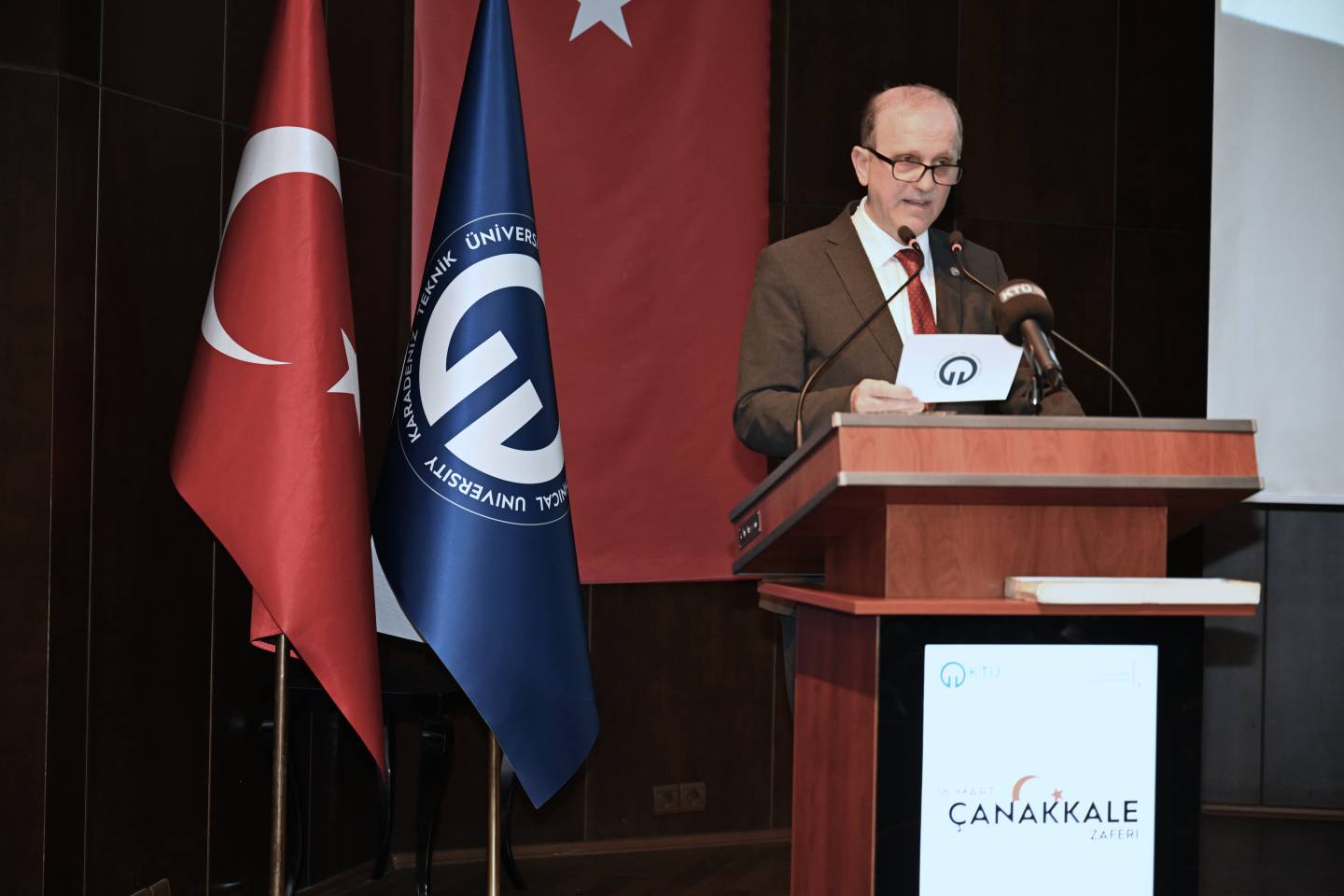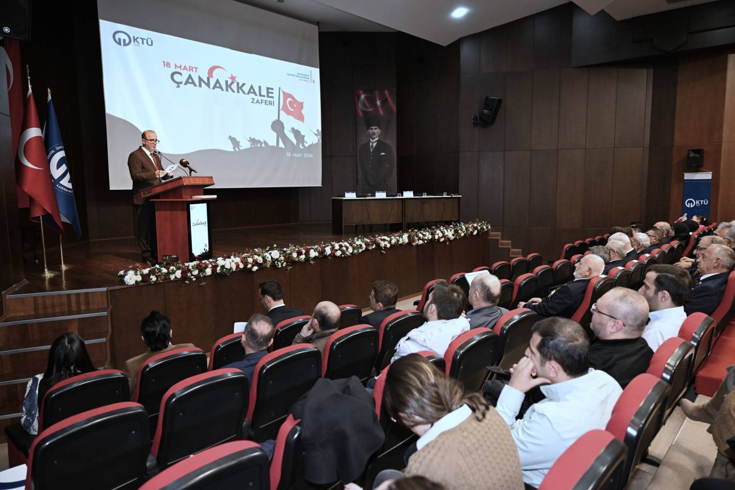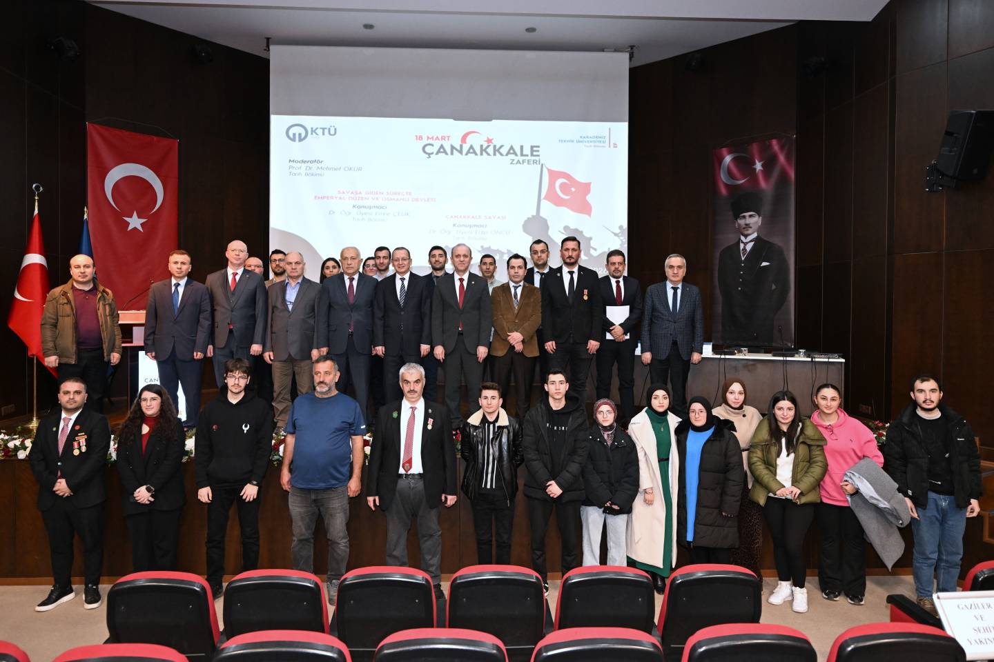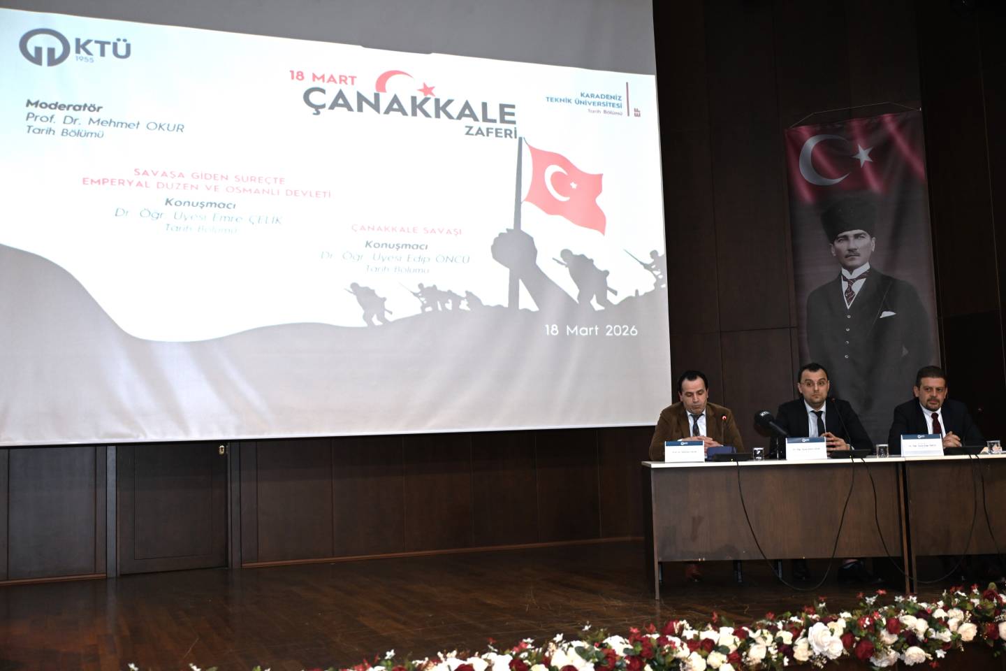 Dünya tarihinin önemli dönüm noktalarından biri olan 18 Mart Çanakkale Zaferi’nin arka planının derinlemesine bir biçimde ele alındığı panele; Trabzon Vali Yardımcısı Dr. Ali YILMAZ, Trabzon Büyükşehir Belediye Başkan V. Ahmet Yüksel GÜLAY, Rektörümüz Prof. Dr. Hamdullah ÇUVALCI, Trabzon Üniversitesi Rektör Yardımcısı Prof. Dr. Hasan KARAL, Trabzon Şehit Meriç Alemdar Polis Meslek Eğitim Merkezi Müdürü İsmail AKINTÜRK, Kıbrıs Gazilerimiz, şehit ailesi derneklerinin temsilcileri, kamu kurum/kuruluş temsilcileri, akademik ve idari personelimiz, öğrencilerimiz ve davetliler katıldı.