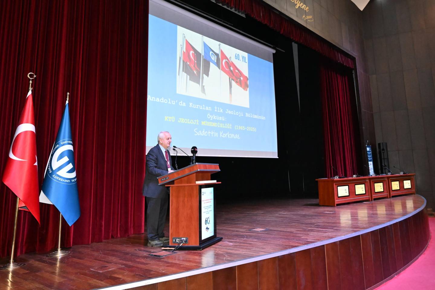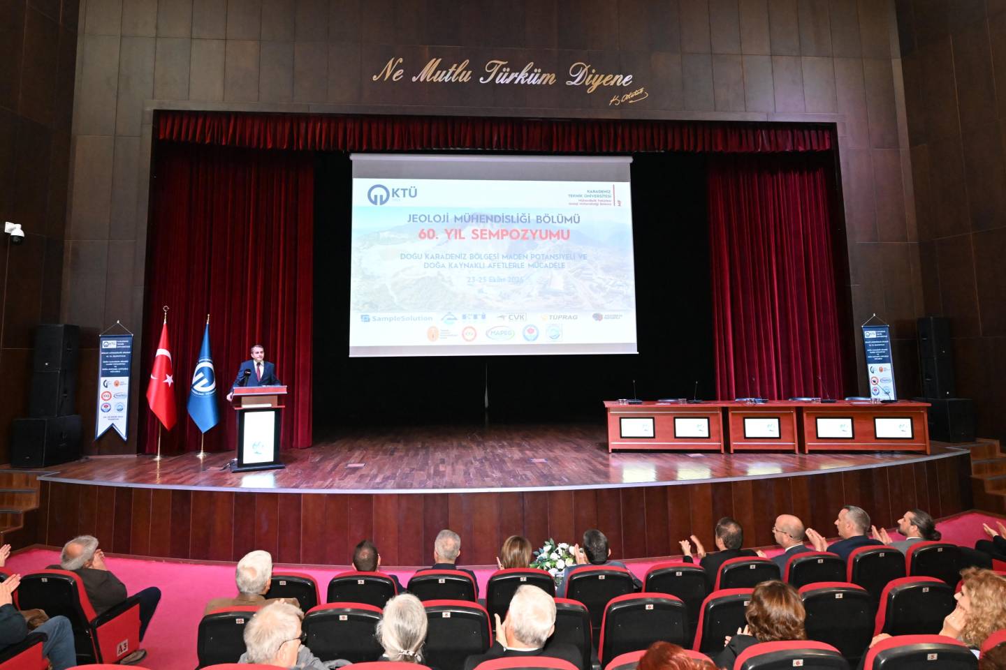 Üniversitemiz Jeoloji Mühendisliği Bölümü, 60 yıllık akademik birikimini ve bilimsel mirasını “Jeoloji Mühendisliği 60. Yıl Sempozyumu” ile bir kez daha gözler önüne serdi. “Doğu Karadeniz Bölgesi Maden Potansiyeli ve Doğa Kaynaklı Afetlerle Mücadele” temasıyla düzenlenen sempozyum, akademisyenleri, araştırmacıları ve sektör temsilcilerini KTÜ Prof. Dr. Osman Turan Kültür ve Kongre Merkezi Hasan Turan Salonu’nda buluşturdu