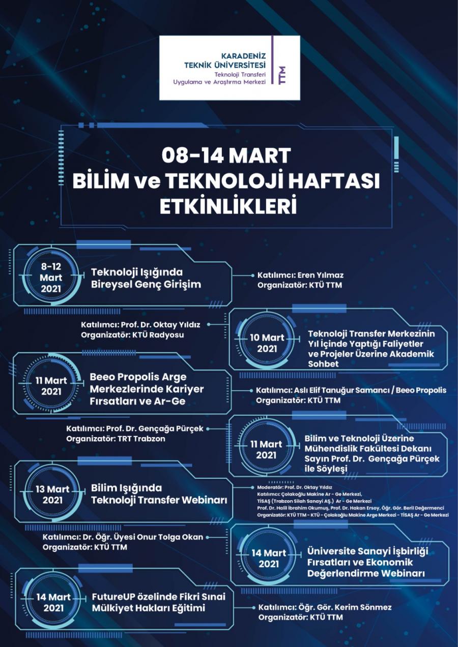 08-14 Mart Bilim ve Teknoloji Etkinlikleri Takvimi