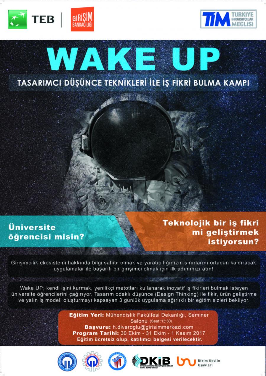 Tasarımcı Düşünce Teknikleri ile İş Fikri Bulma Kampı "Wake Up" Etkinliğine Tüm Öğrencilerimiz Davetlidir