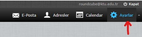 Öncelikle Roundcube girişinizi yapın. Sağ üst kısımdaki Ayarlar kısmında tıklayın resimdeki gibi.