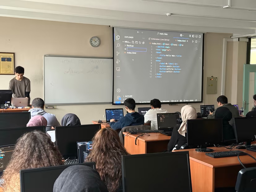 Yazılım Geliştirme Kulübümüz, öğrencilerin teknik yetkinliklerini artırmaya yönelik düzenlediği etkinliklere bir yenisini daha ekledi. 12 Aralık Cuma gününde laboratuvarımızda gerçekleştirilen "Hello Web" etkinliği, web geliştirme dünyasına adım atmak isteyen öğrencilerimizden büyük ilgi gördü.