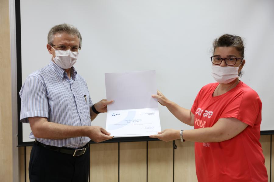 Rektör Yardımcıları Prof. Dr. Hikmet ÖKSÜZ ve Prof. Dr. Halil İbrahim OKUMUŞ ile Genel Sekreter Vekili Prof. Dr. Bünyamin ER’in de hazır bulunduğu ve birer konuşma yaptığı törende 52 personele sertifika verildi.