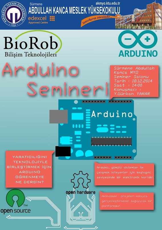 Arduino bir G/Ç kartı ve Processing/Wiring dilinin bir uygulamasını içeren geliştirme ortamından oluşan bir fiziksel programlama platformu olduğunu belirten Y. Gürkan Yarar, Arduinonun tek başına çalışan interaktif nesneler geliştirmek için kullanılabileceği gibi bilgisayar üzerinde çalışan yazılımlara da (Macromedia Flash, Processing, Max/MSP, Pure Data, SuperCollider gibi) bağlanabileceğini söyledi. Yarar, Arduino kütüphaneleri ile kolaylıkla programlama yapılabileceğini, analog ve digital sinyalleri alarak işlenebileceğine vurgu yaptı. BioRob Bilişim ve Danışmanlık Şirketi Ar-Ge Sorumlusu Yavuz Gürkan Yarar; “Sensörlerden gelen sinyalleri kullanarak, çevresiyle etkileşim içerisinde olan robotlar ve sistemler tasarlayabilir, tasarladığınız projeye özgü olarak dış dünyaya hareket, ışık, ses gibi tepkiler oluşturabilirsiniz. Arduino 'nun farklı ihtiyaçlara çözüm üretebilmek için tasarlanmış çeşitli kartları ve modülleri bulunmaktadır. Bu kart ve modülleri kullanarak projelerinizi geliştirebilirsiniz. Hazır üretilmiş kartlar satın alabilir veya kendileri üretmek isteyenler için donanım tasarım yapabilirsiniz. Yarar, bu temel eğitimden sonra Arduino ile yapacaklarınız sizin tasarım ve uygulama becerilerinize ve çalışmanız bağlı olacaktır. Uygulama örneklerini inceleyerek, basitten başlayarak adım adım kendi projelerinizi tasarlayıp uygulamaya başlayabilirsiniz.”dedi.