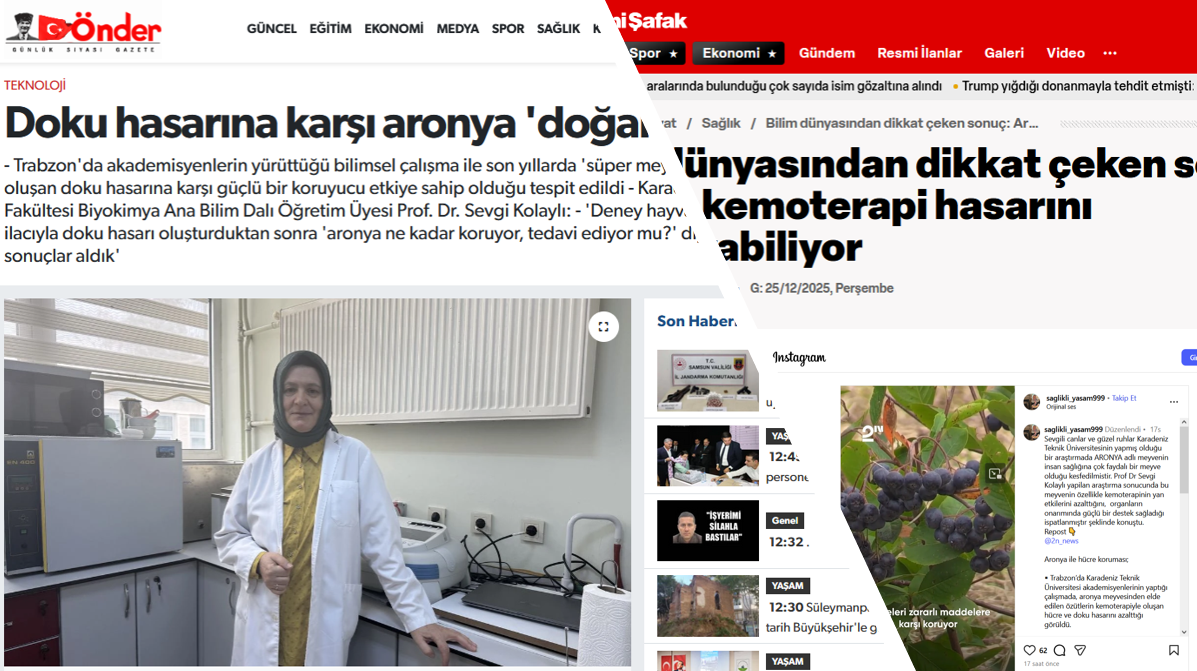 Bu çalışmaların sonuçları, Anadolu Ajansı (AA) tarafından yapılan bir röportaj aracılığıyla kamuoyuyla paylaşılmış; ardından çeşitli haber sitelerinde ve sosyal medya platformlarında yer almıştır. Haberlerde, aronyanın antioksidan kapasitesine ve oksidatif hasarla ilişkili biyolojik mekanizmalara yönelik bilimsel değerlendirmelere değinilmiştir.