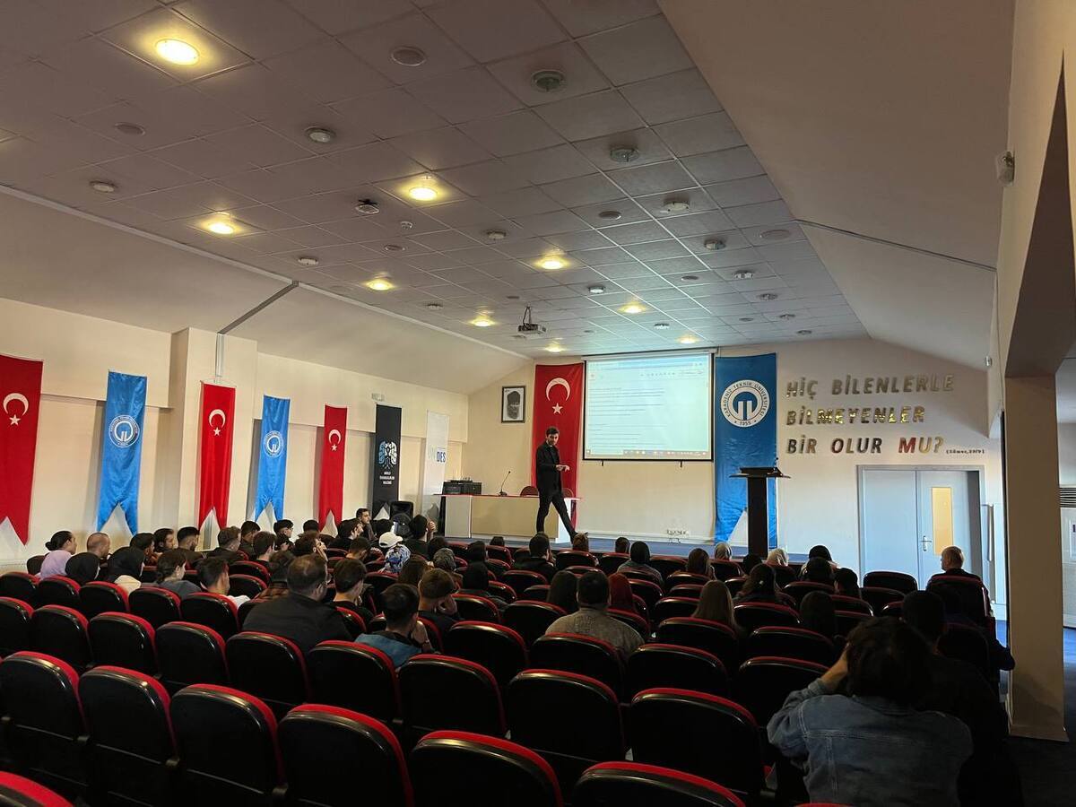Bölüm Başkanı Öğr. Gör. Emre Turan, proje kapsamı ve hazırlanan projelerin genel değerlendirilmesi hakkında öğrencilere bilgilendirme yaptı. Ardından Öğr. Gör. Fatih Tiryaki, projelerde yapılan hatalar, düzeltme yöntemleri ve örnek projeler üzerine bir sunum gerçekleştirdi. Sunumun ardından Öğr. Gör. Didem Çakır ve Öğr. Gör. Abdullah Haşim Atınç, öğrencilerin projelerini kontrol ederek sorularını yanıtladılar.