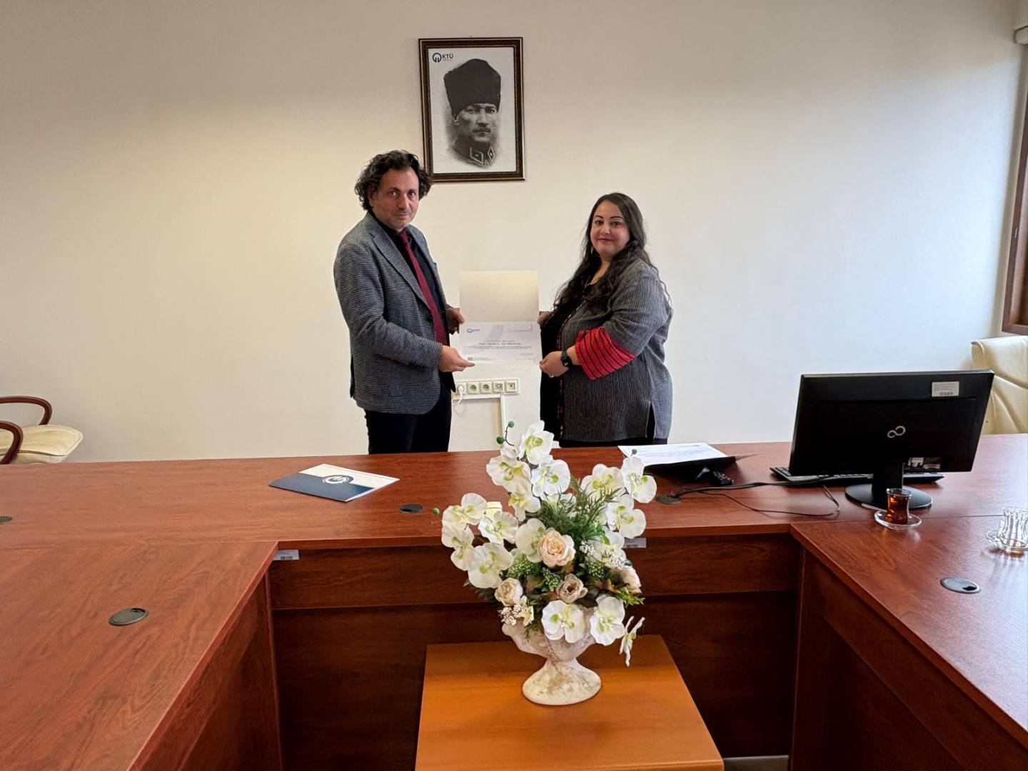 Araklı Cumhuriyet Başsavcısı Muhammet Mustafa TURHAN, Müdürümüz Prof. Dr. Özcan ÖZYURT'u makamında ziyaret etti.