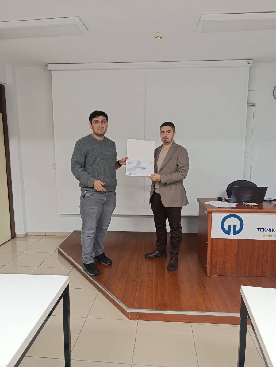 Etkinliğin sonunda söyleşiyle ilgili ödüllü bir soru yöneltildi ve soruyu doğru yanıtlayan ilk öğrencimiz olan Ahmet Kerim CERAN’a, makine mühendisliğinin en temel ölçme aletlerinden biri olan kumpas hediye edildi.