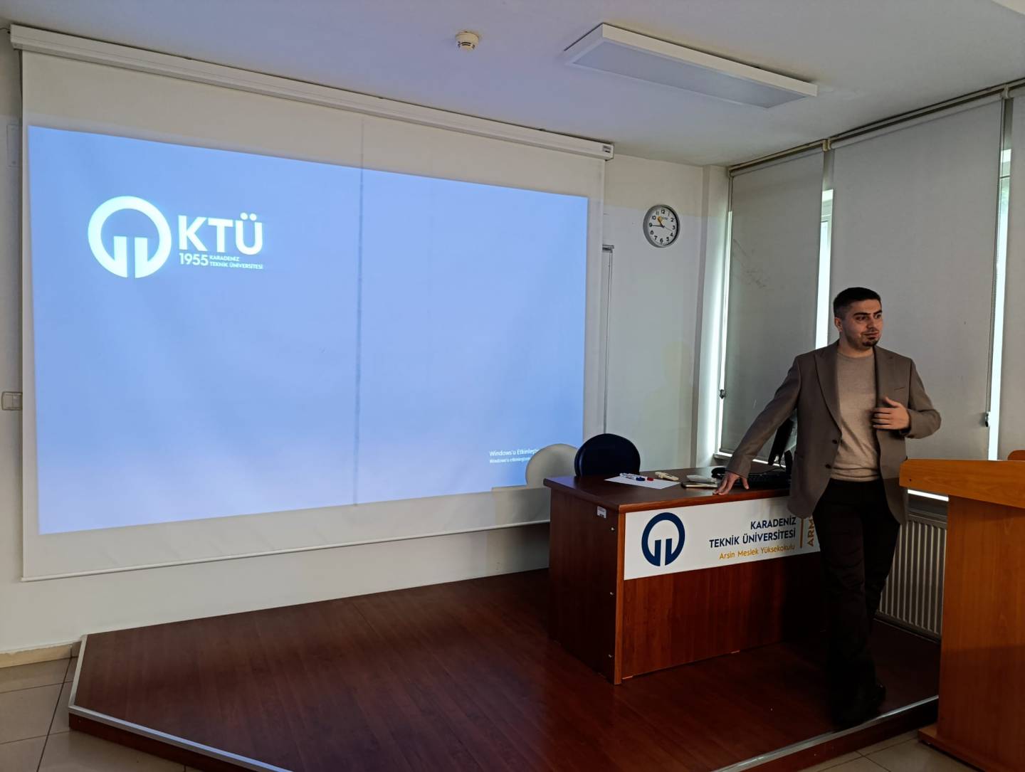 Elektrik ve Enerji Bölümü Doğalgaz ve Tesisatı Teknolojisi programı tarafından düzenlenen "Makine Mühendisliğinde Kariyer" konulu söyleşiye, KTÜ Makine Mühendisliği Bölüm Başkan Yardımcısı Doç. Dr. Mehmet SEYHAN, konuk olarak katıldı. SEYHAN, KTÜ Makine Mühendisliği bölümünün tarihsel gelişimine ve Türkiye’deki stratejik önemine değinerek, makine mühendisliğinin teknoloji ve sanayi alanındaki kritik rolünü vurguladı. Ardından, makine mühendisliğinde yer alan anabilim dallarını tanıtarak bu alanların sunduğu çeşitli çalışma fırsatlarını katılımcılara aktardı. Son olarak, makine mühendisliğinin öncü teknolojiler ve yenilikçi çözümler üretmedeki rolüne değinerek gelecekteki trendler hakkında bilgi verdi.