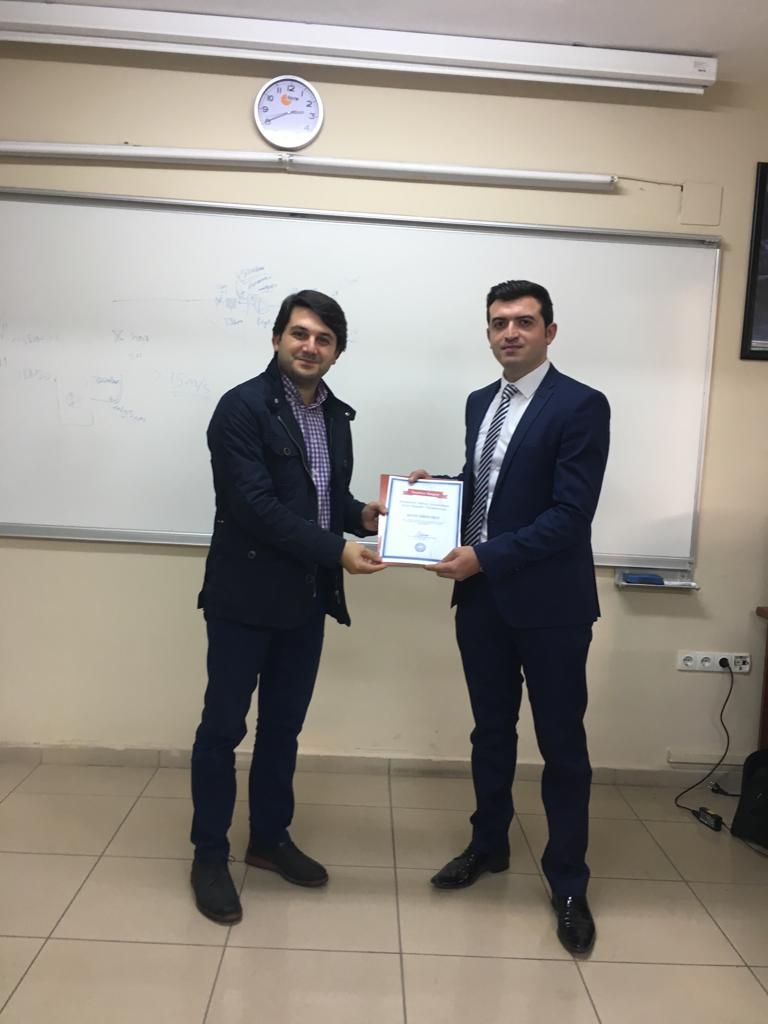 13 Aralık Çarşamba günü düzenlenen etkinlikte Aksa Karadeniz Doğalgaz Trabzon temsilcisi Sayın Ömer REVİ tarafından ''Tesisat Kontrol ve Kabul Esasları'' semineri düzenlendi.Bölgemizde karşılaşılan sorunlar ve yeni doğalgaz yatırım planları hakkında degerlendirmelerin ardından öğrencilerin konu ile ilgili sorularının cevaplanmasıyla etkinlik sona erdi.Sunumun ardından Arsin MYO Müdür Yardımcısı Öğr.Gör.Yakup HEYAL TARAFINDAN Ömer REVİ'ye teşekkür belgesi takdim edildi.