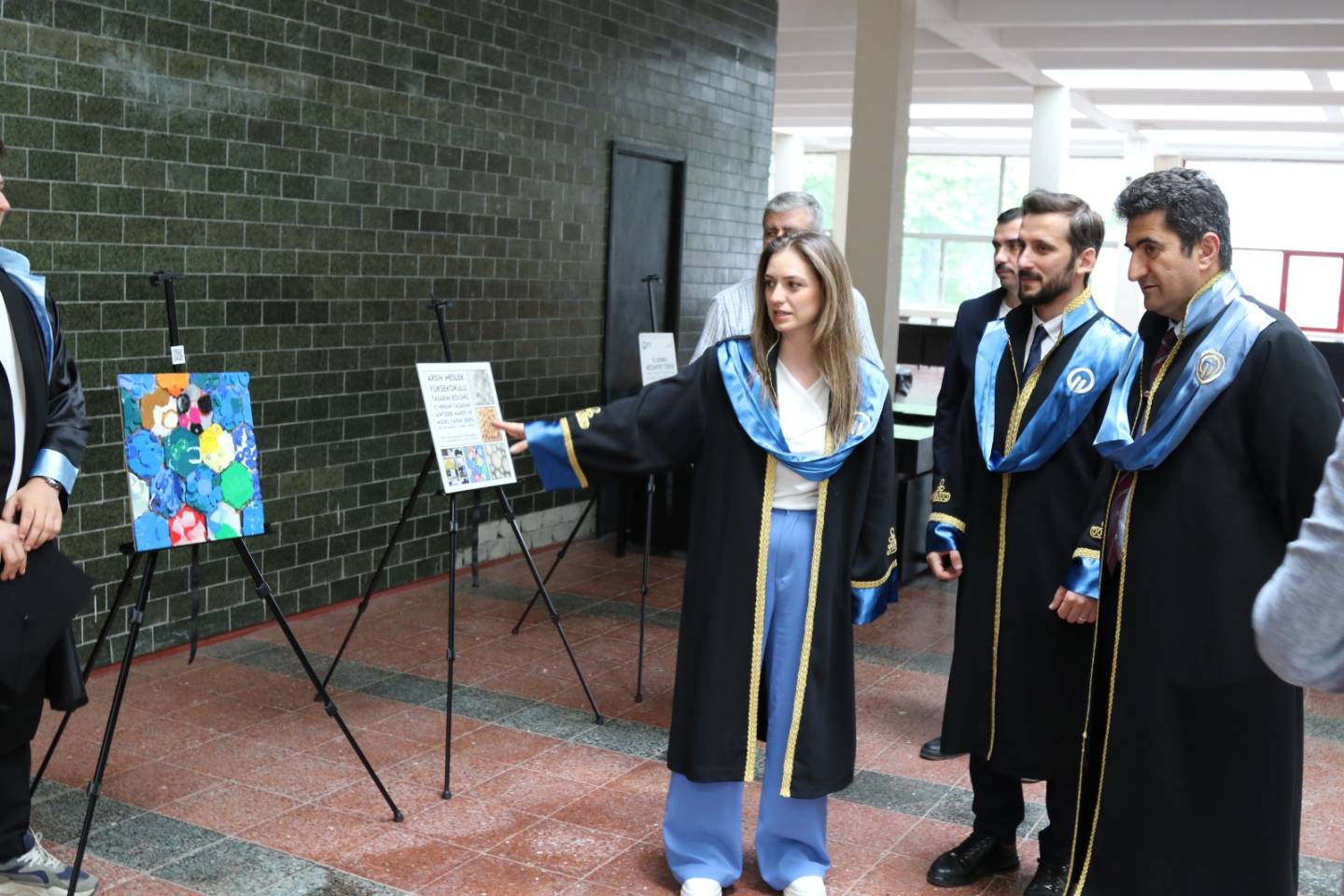 Sıfır Atık hassasiyeti bağlamında, İç Mekan Tasarımı Programımız AIMT2008 Maket ve Model Yapımı dersi kapsamında Dr. Öğr. Üyesi Zeynep SADIKLAR yürütücülüğünde hazırlanan ve atık malzemelerden üretilen duvar panoları, Üniversitemiz Atatürk Kültür Merkezi fuayesinde 17 Haziran 2025 tarihinde sergilendi. Sergiyi, Rektör yardımcımız Prof. Dr. Ömer Faruk URSAVAŞ ve Müdürümüz Doç. Dr. Hasan ÖZTÜRK birlikte ziyaret ederek, ürünleri hazırlayan öğrencilerden bilgi aldılar.