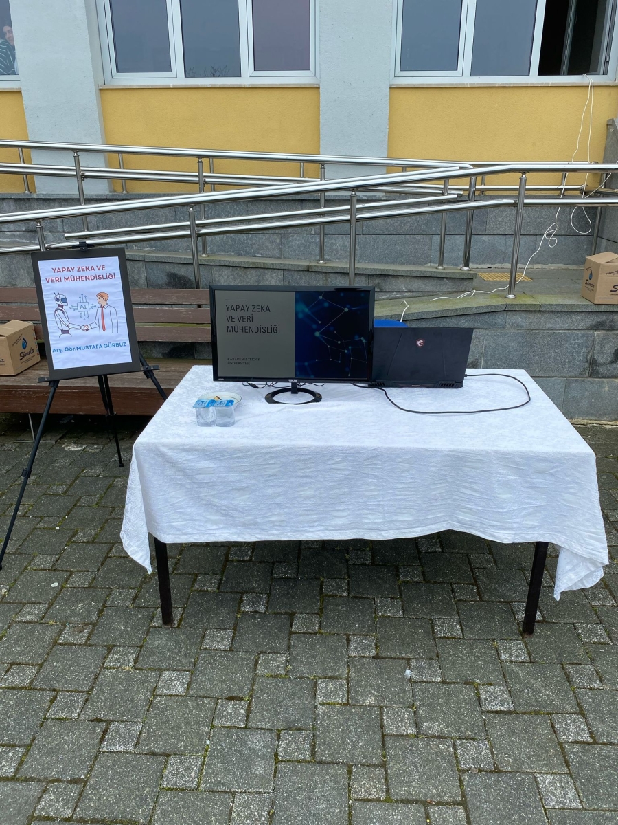 As part of our department promotion efforts, Sürmene Hasan Tahsin Kırali Anatolian High School was visited on Tuesday, April 22, 2025. Our Research Assistant Mustafa Gürbüz introduced the Department of Artificial Intelligence and Data Engineering to students during the school's Career Days, answered their questions about the department, and provided information about career paths and job opportunities. We extend our sincere thanks to Sürmene Hasan Tahsin Kırali Anatolian High School for their kind invitation and warm hospitality.