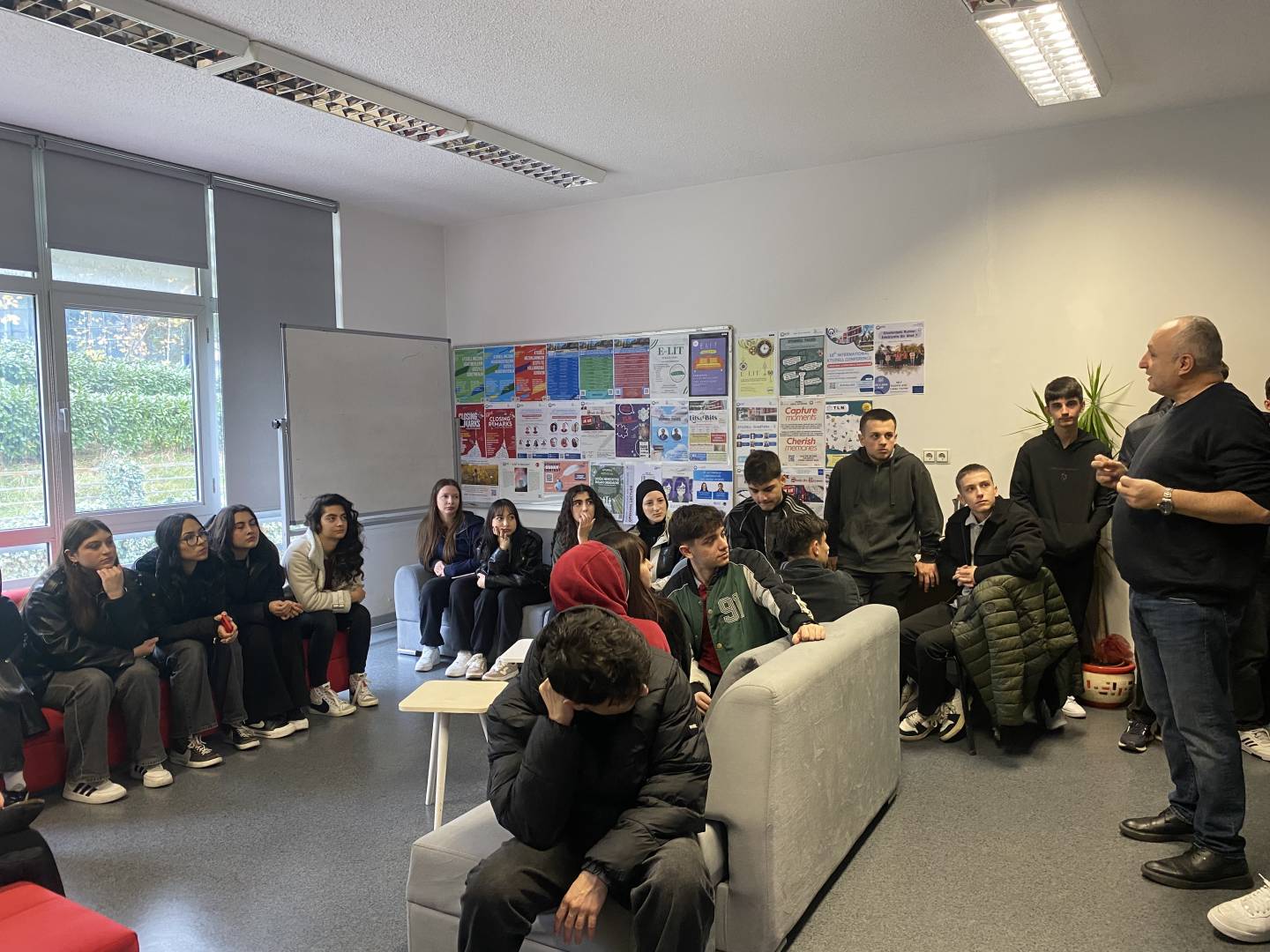 Trabzon 15 Temmuz Şehitleri Anadolu Lisesi öğretmen ve öğrencileri, 9 Aralık 2025 tarihinde bölümümüzü ziyaret etti. Gerçekleştirilen bilgilendirme toplantısında bölümümüzde sunulan lisans eğitiminin kapsamı, öğrenciler tarafından yürütülen akademik ve kültürel çalışmalar, bölümde düzenlenen bilimsel ve sosyal etkinlikler ile uluslararası hareketlilik fırsatları hakkında detaylı bilgi verildi.