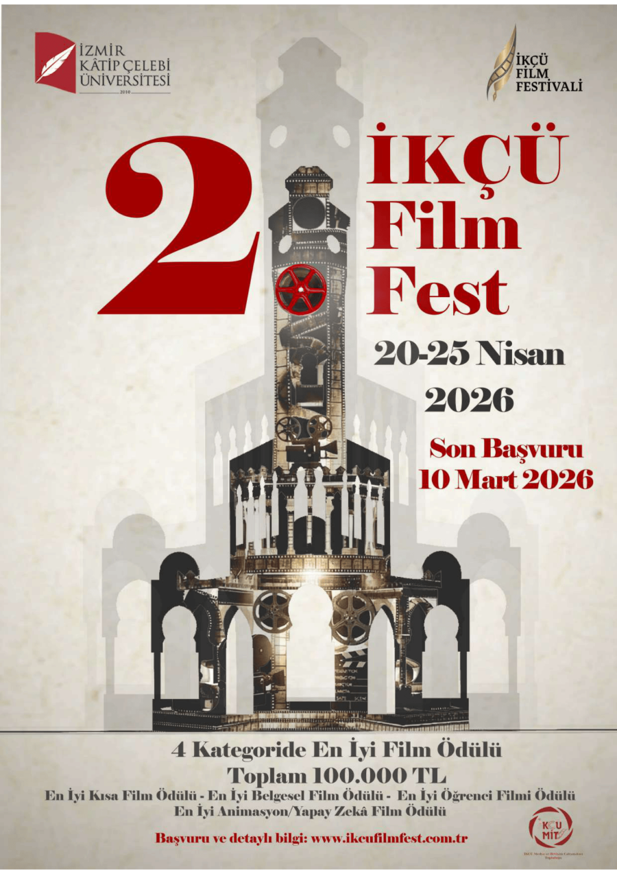 İzmir Katip Çelebi Üniversitesi ev sahipliğinde Medya ve İletişim Topluluğu tarafından 20-25 Nisan 2026 tarihleri arasında düzenlenecek olan "2. İKÇÜ Film Festivali" kapsamında gerçekleştirilecek kısa film yarışmasına başvurular devam etmektedir.