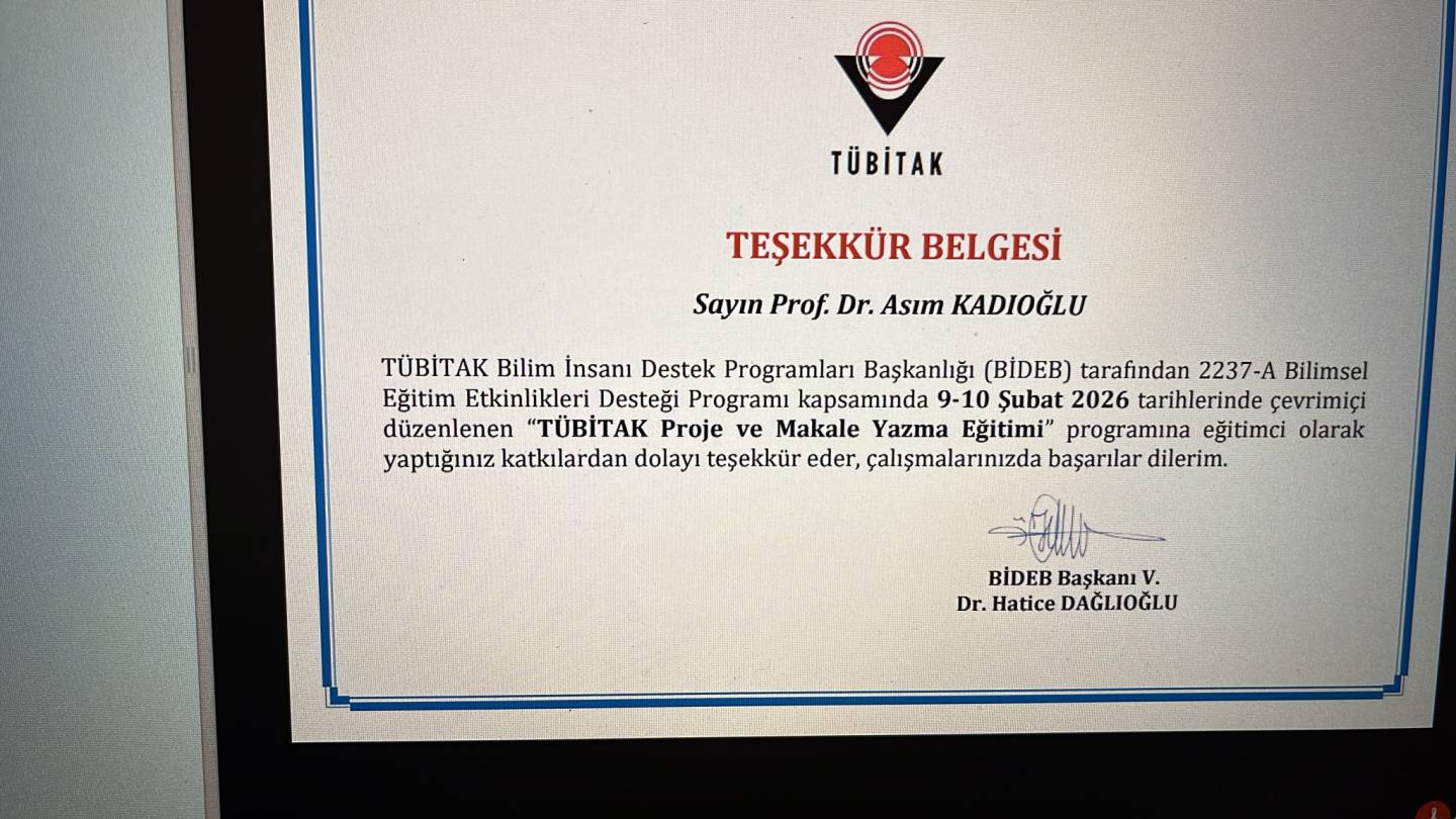 Bölüm öğretim üyelerimizden Prof. Dr. Asım KADİOĞLU 2237-A eğitim etkinlikleri kapsamında ''TÜBİTAK Proje ve Makale Yazma Eğitimi'' düzenledi.
