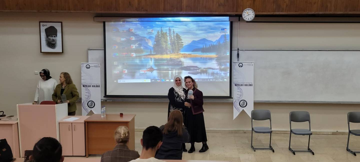 10 Aralık 2025 Fizik bölümü büyük amfide düzenlenen etkinliğe öğrencilerimizin yoğun katılım gösterdiği gözlendi. Konuşmacılarımız Prof. Dr. Şengül ALPAY KARAOĞLU, Prof. Dr. Figen CELEP KARAOĞLU ve Prof. Dr. Sema AYAZ eski bölüm mezunlarımız olarak, mezuniyet sonrasında kariyer gelişimleri için neler yaptıklarını, nasıl yollar izlediklerini, onları en çok zorlayan şeyleri ve bu zorlukların nasıl aşıldığı konularında öğrencilerimizle akademik kariyer gelişim hikayelerini paylaştılar.