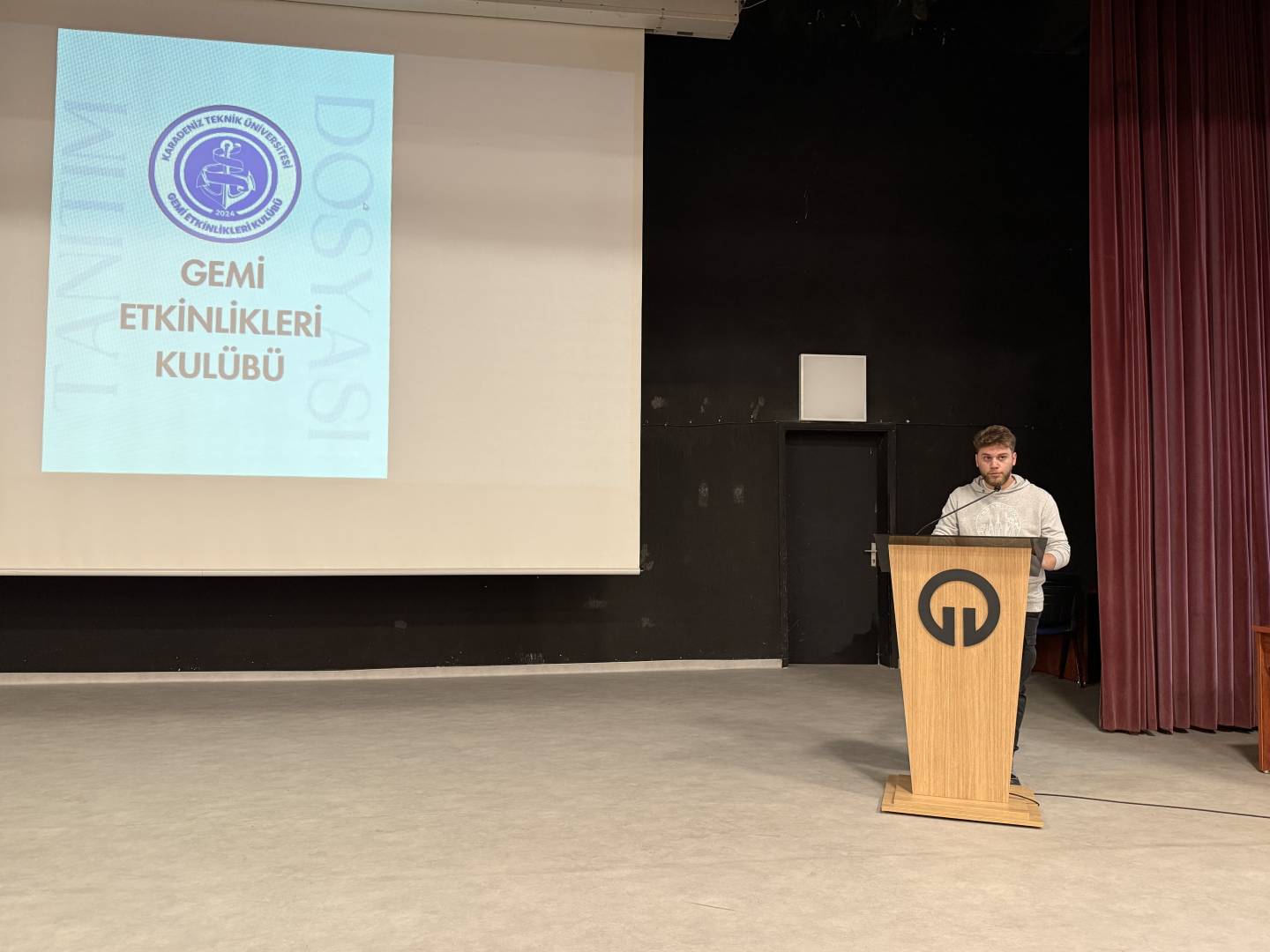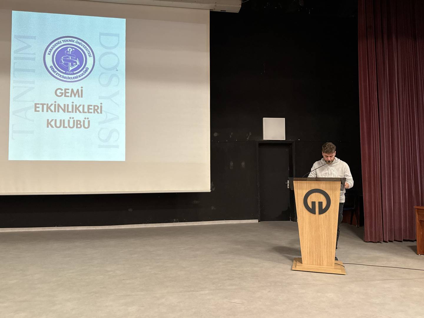 Toplantıda fakültemiz bünyesinde aktif olarak faaliyet gösteren Gemi İnşaatı ve Deniz Teknolojileri Kulübü, Gemi Makineleri İşletme Mühendisliği Kulübü, Gemi Etkinlikleri Kulübü, KTÜ Yelken Kulübü ve Denizci Öğrenciler Derneği temsilcileri, kulüplerinin amaçlarını, yürüttükleri faaliyetleri ve üyelik süreçlerini tanıttı.