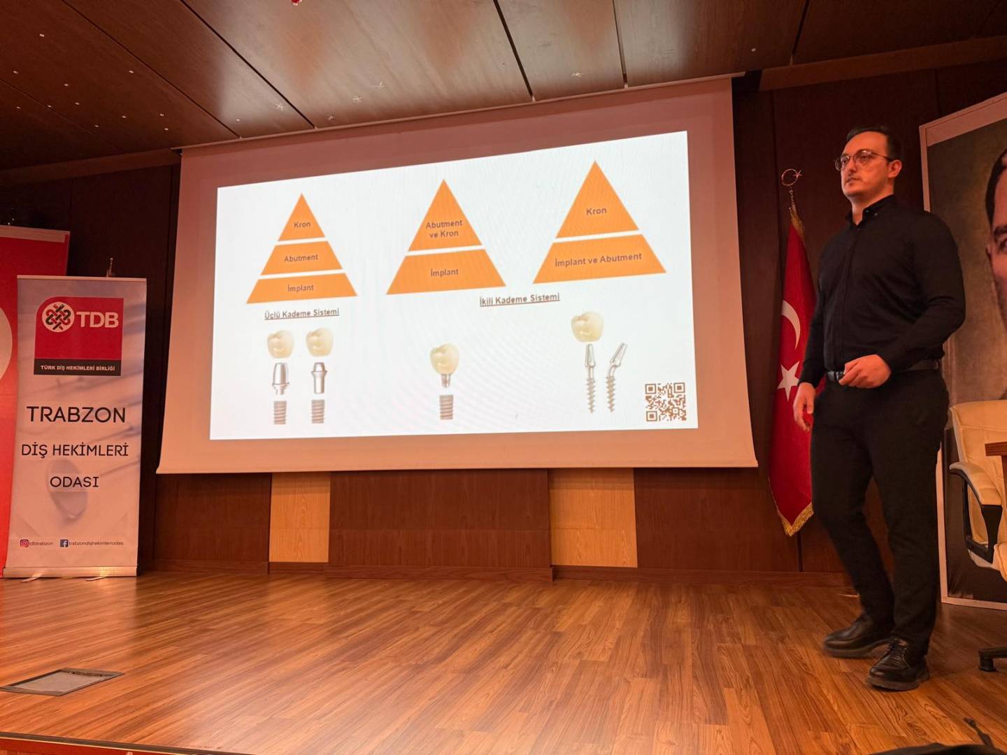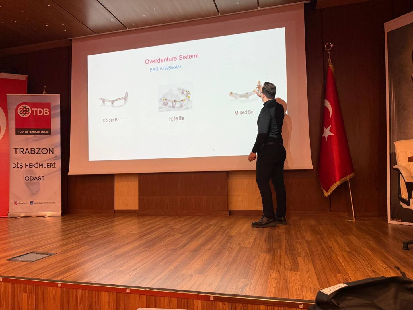 Trabzon Diş Hekimleri Odası tarafından 28 Eylül 2025 tarihinde Artvin’de düzenlenen bilimsel etkinlik kapsamında, Fakültemiz Klinik Bilimler Bölümü Ağız, Diş ve Çene Cerrahisi Anabilim Dalı öğretim üyesi Doç. Dr. Efe Can SİVRİKAYA “İmplant Başarısızlıkları”, Protetik Diş Tedavisi Anabilim Dalı öğretim üyesi Dr. Öğr. Üyesi Nesim ŞAHİN ise “İmplant Üstü Protezler” konulu sunumlarıyla katılımcılara güncel bilimsel gelişmeler hakkında bilgi paylaşımında bulunmuşlardır.