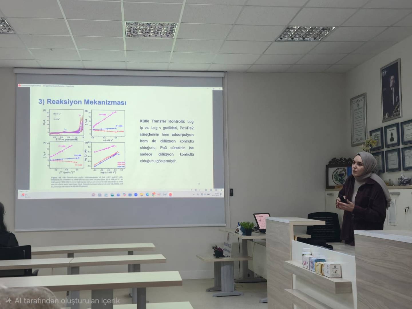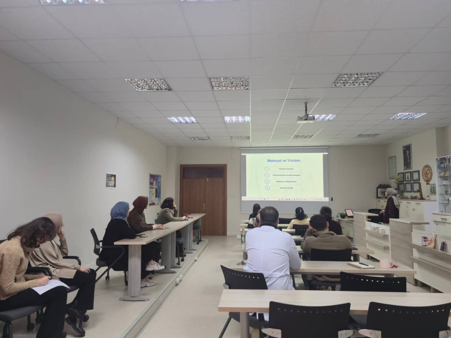 4 Şubat 2026 tarihinde Fakültemiz Analitik Kimya Ana Bilim Dalı'ndan Arş. Gör. Elif ŞİŞMAN'ın sunumuyla makale saati etkinliği gerçekleştirildi. Sunumun ardından katılımcılarımız, makale hakkında bilimsel değerlendirmeler yaptılar.