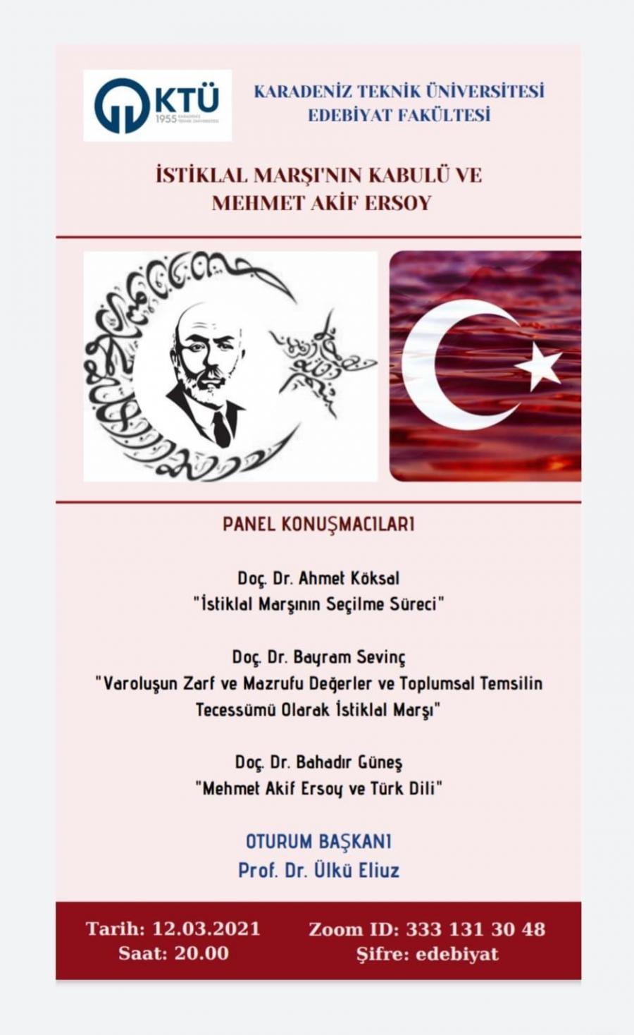 İstiklal Marşının Kabulu ve Mehmet Akif ERSOY konulu Panele Davetlisiniz