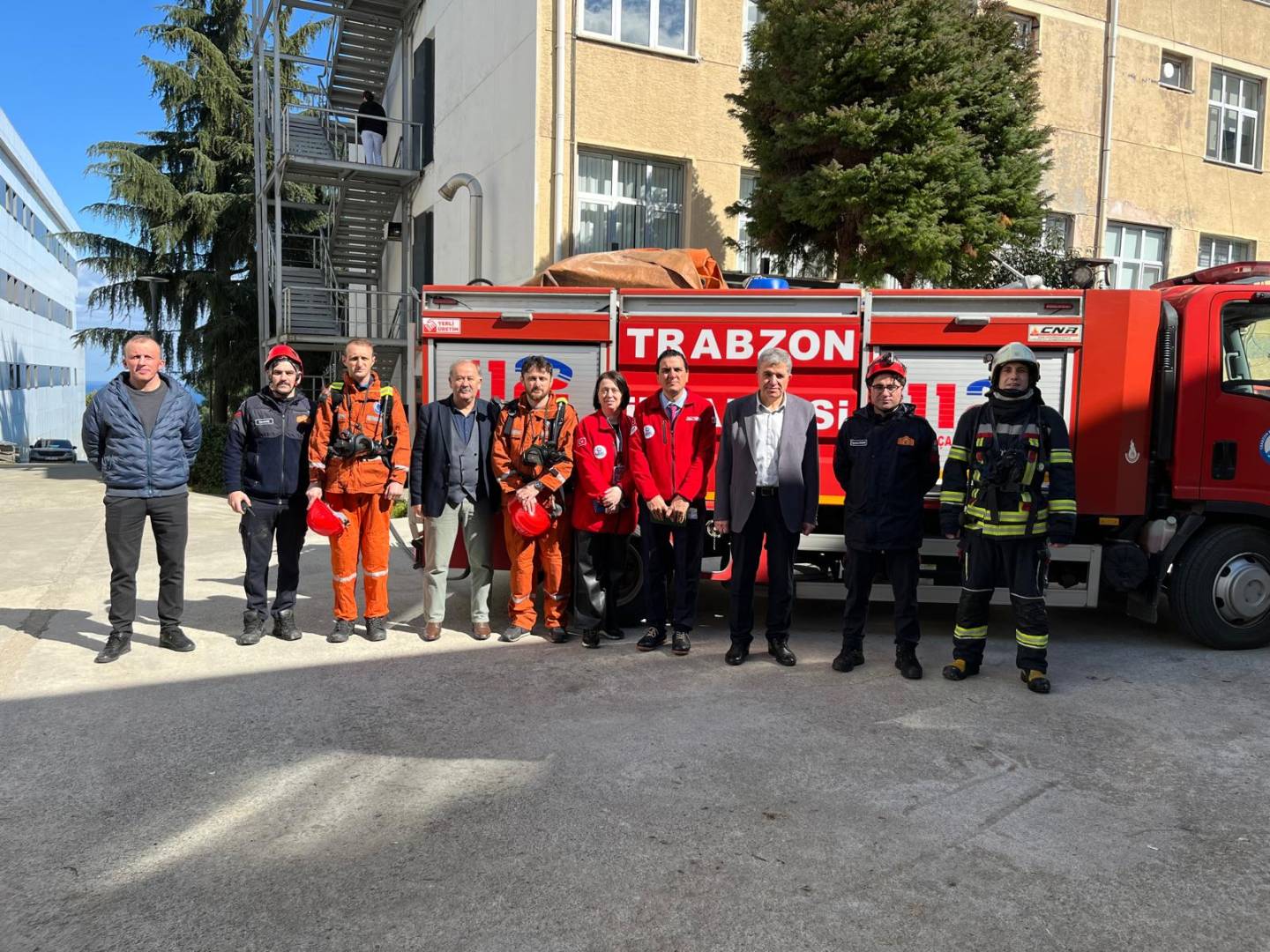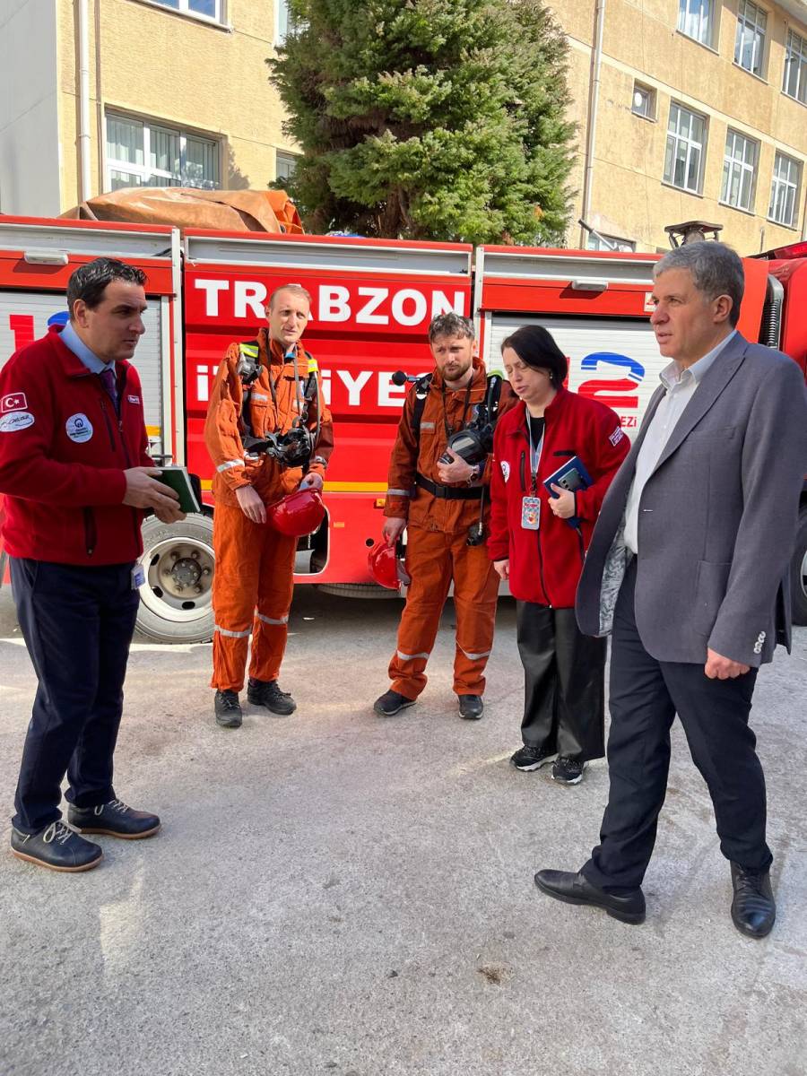 Trabzon Büyükşehir Belediyesi İtfaiye Daire Başkanlığı ile yapılan görüşmeler neticesinde, hastanemiz yerleşkesinde olası yangın ve acil durumlara müdahale süreçlerinin değerlendirilmesi amacıyla 09.03.2026 tarihinde yerleşke keşfi ve yangın tatbikatı gerçekleştirilmiştir.
