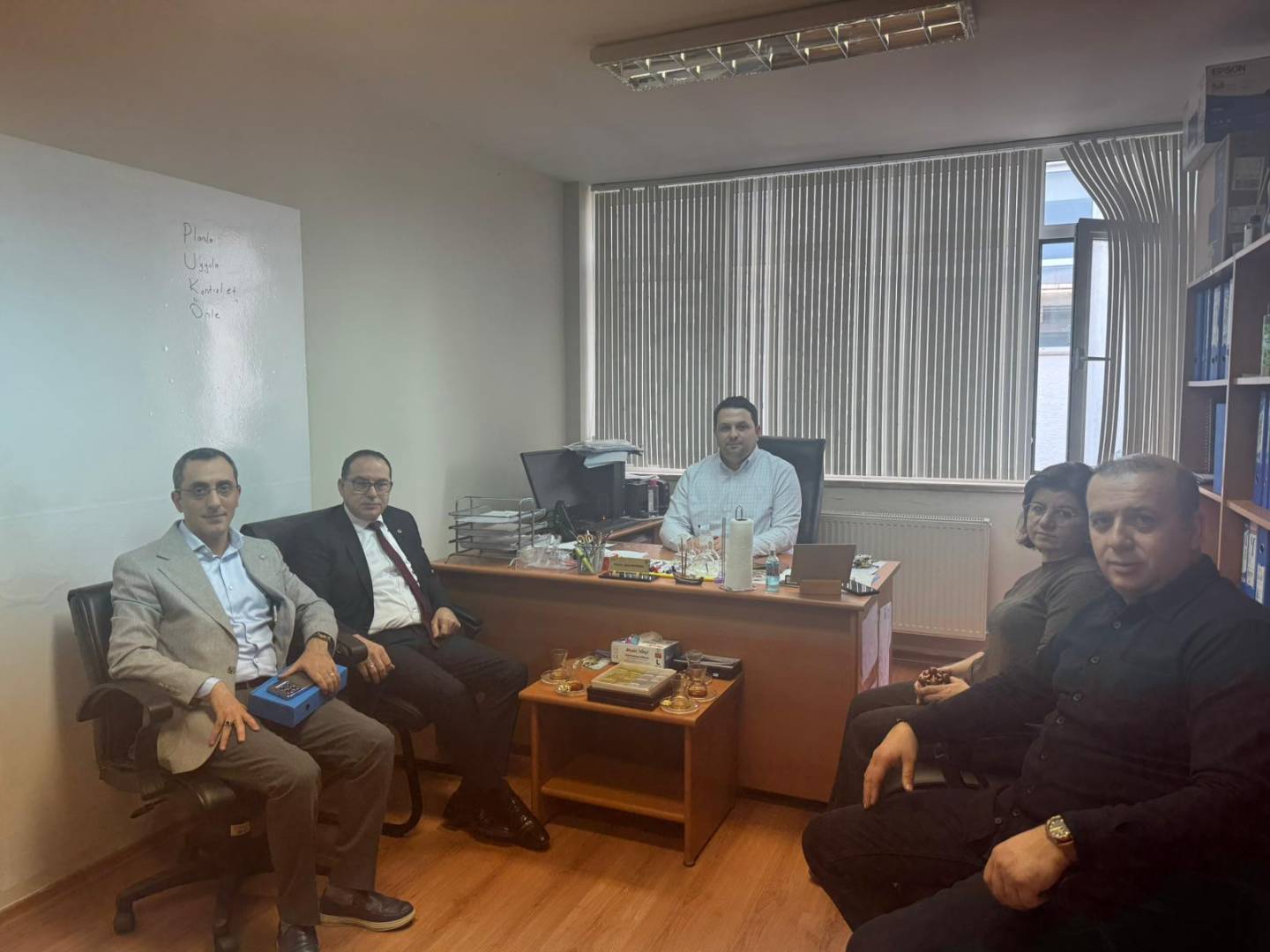 Fakültemiz Kimya Bölümü öğretim üyelerinden Prof. Dr. Ümit DEMİRBAŞ'a "Profesör" unvanı alması nedeniyle Dekanımız Prof. Dr. Ali Osman BELDÜZ ve Dekan Yardımcıları Prof. Dr. Nurhayat ÖZDEMİR ile Prof. Dr. Zekeriya BIYIKLIOĞLU tarafından tebrik ziyareti gerçekleştirilmiştir.