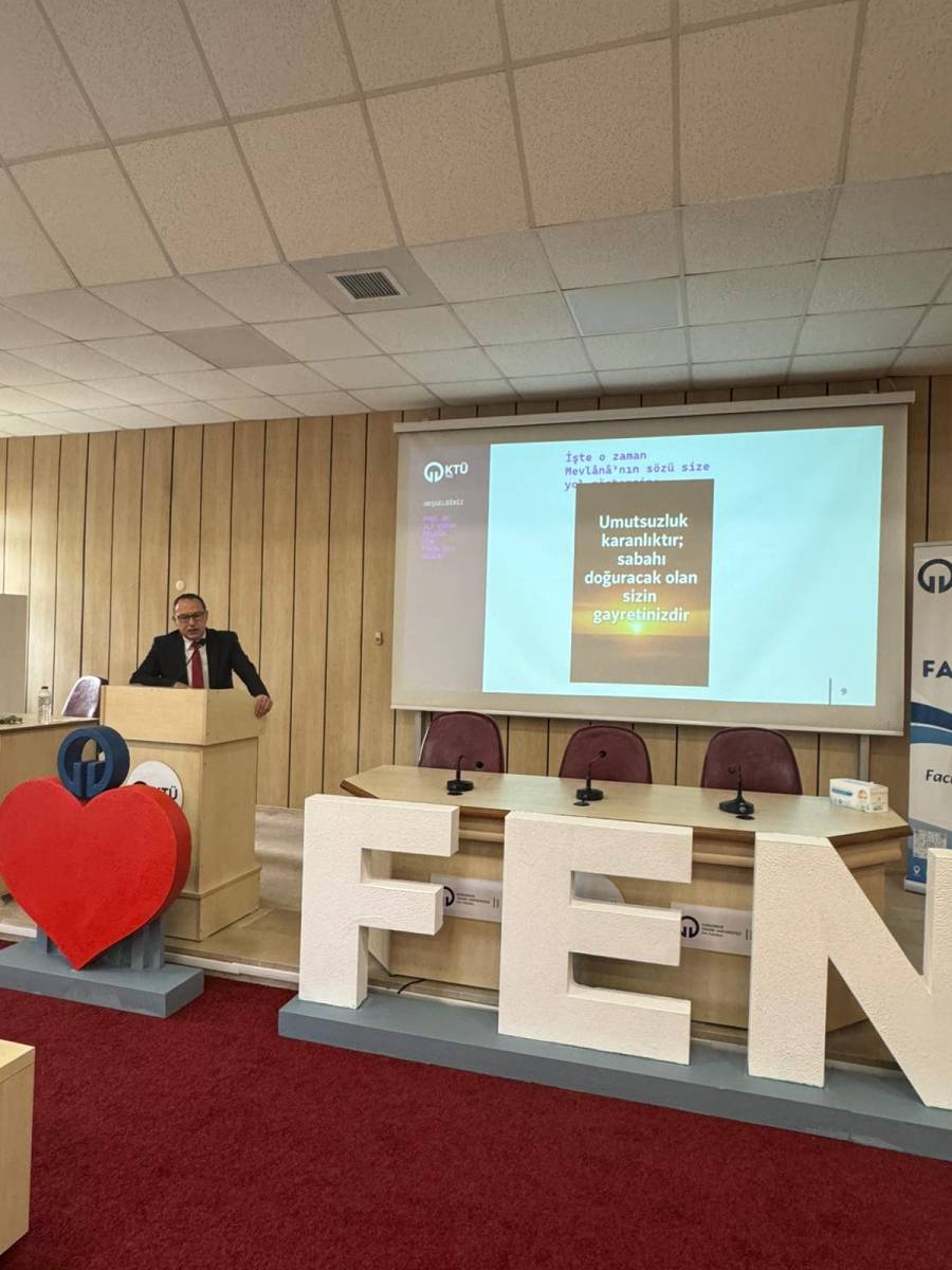 Programa Karadeniz Teknik Üniversitesi Rektör Yardımcısı Prof. Dr. Ömer Faruk URSAVAŞ, Fakültemiz Dekanı Prof. Dr. Ali Osman BELDÜZ, Dekan Yardımcılarımız Prof. Dr. Nurhayat ÖZDEMİR ve Prof. Dr. Zekeriya BIYIKLIOĞLU, Bölüm Başkanlarımız, fakültemiz öğretim elemanları ve 1. sınıf öğrencileri katıldı.