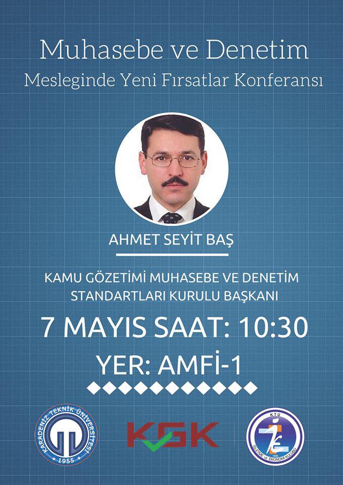 Kamu Gözetimi Muhasebe ve Denetim Standartları Kurulu Başkanı Ahmet Seyit BAŞ 7 Mayıs Perşembe Günü Saat 10.30'da İktisadi ve İdari Bilimler Fakültesinin Düzenlediği "Muhasebe ve Denetim Mesleğinde Yeni Fırsatlar" Konulu Konferansta Öğretim Üyesi ve Öğrencilerimizle Deneyimlerini Paylaştı.