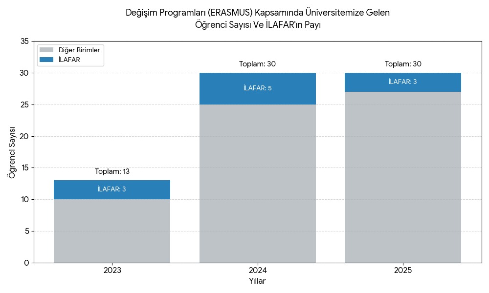 Üniversitemiz, son üç yılda uluslararası öğrenci hareketliliğinde bir büyüme kaydederken KTÜ İLAFAR bu süreçteki istikrarlı grafiği ile öne çıkıyor. KTÜ'ye değişim programları kapsamında 2023 yılında 13, 2024 ve 2025 yıllarında 30 uluslararası öğrenci gelirken bu dinamik büyüme sürecinde İLAFAR, stratejik bir birim olarak lokomotif görevi üstlendi. Öte yandan Uygulama ve Araştırma Merkezleri arasında öğrenci tercihleri bakımından ilk sıradaki yerini son üç yıldır korudu. Gelecek dönemlerde de öğrenci çeşitliliğini artırmayı hedefleyen İLAFAR, bilimsel projelerine ve öğrenci odaklı araştırma faaliyetlerine hız kesmeden devam edecek.
