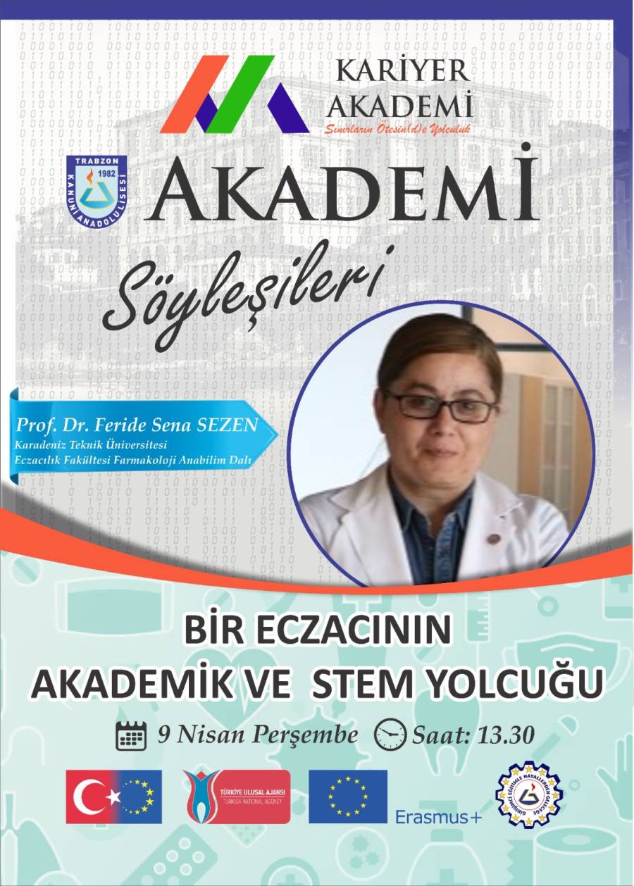 Trabzon Kanuni Anadolu Lisesi Girişimcilik ve Kariyer Kulübü tarafından, Erasmus+ KA122 SCH  projesi  “Sınırların Ötesinde Geleceğe Yolculuk - STEM ile Kariyer İçin Etkinlikler” kapsamında organize edilen  Akademi Söyleşileri programına konuk olan Merkez Müdürümüz Prof. Dr. F. Sena SEZEN, genç liseliler ile bir araya geldi. Müdürümüz; bilimsel araştırma süreçleri, uluslararası akademik deneyimler ve yapay zekanın sağlık alanındaki rolü hakkında gençlere bilgi ve tecrübelerini aktardı.