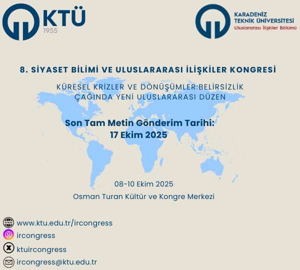 8. Siyaset Bilimi ve Uluslararası İlişkiler Kongresi tam metin gönderimleri başlamıştır. Başvuru sayfasına ulaşmak için tıklayınız.