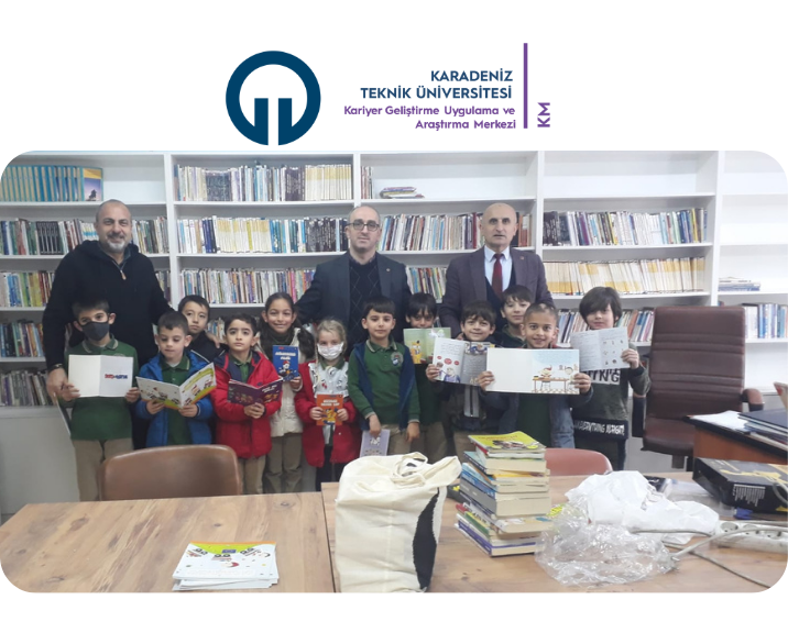 KTÜ Kariyer Geliştirme Uygulama ve Araştırma Merkezi Müdür Yrd. Öğr. Gör. Dr. Zafer YAVUZ 12 Ocak 2023 tarihinde “Bir Kitap Bir Umut” başlıklı etkinliğimiz kapsamında Trabzon Ortahisar Kutlugün İlkokulunu ziyaret etti. Etkinlik kapsamında toplanan kitapların bir kısmı Trabzon Ortahisar Kutlugün İlkokulu kütüphanesinde yerini aldı.